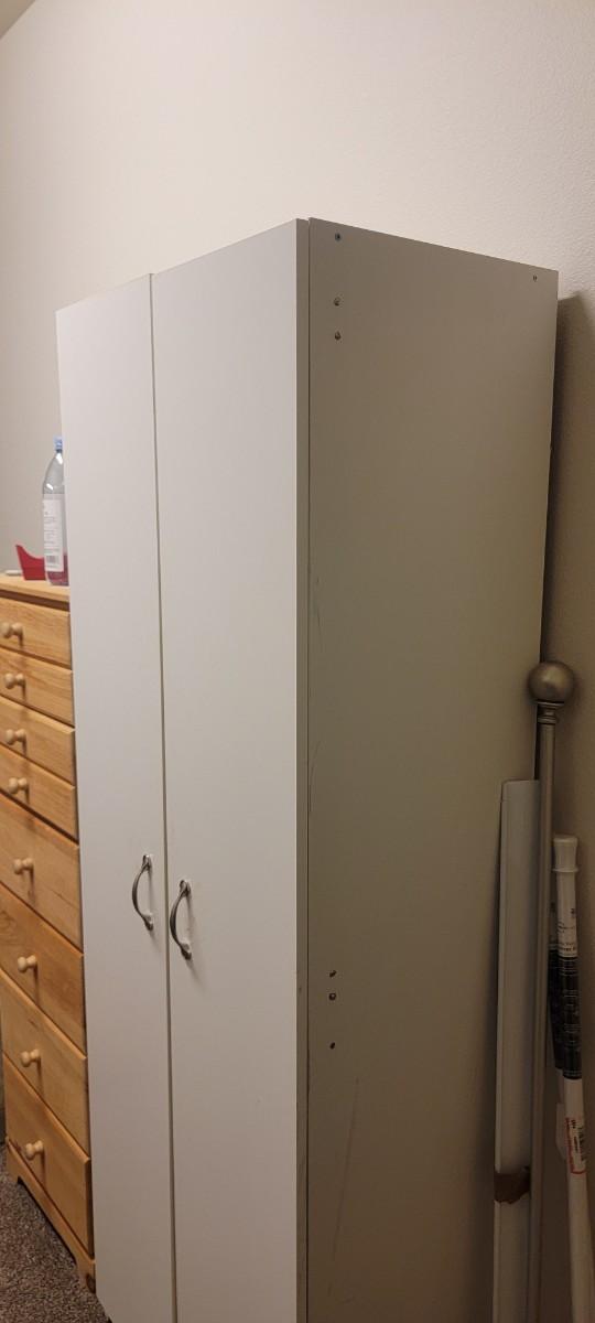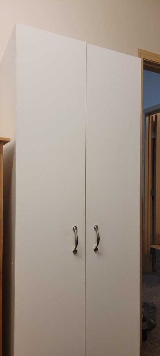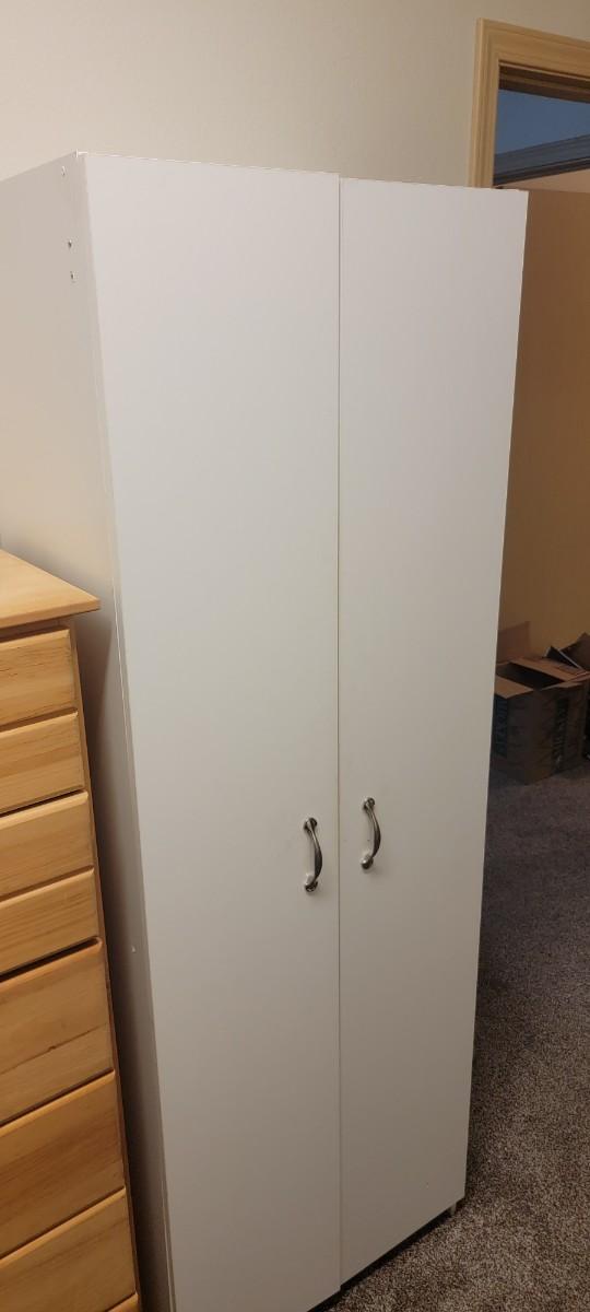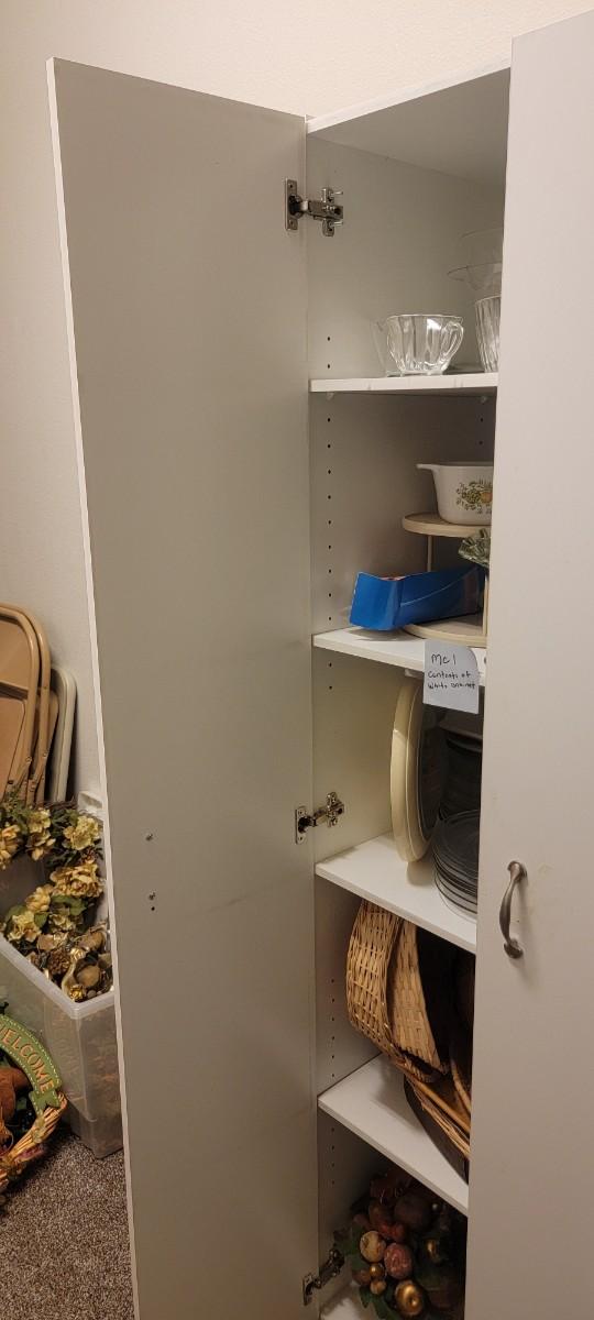 White five shelf storage cabinet. 24" W x 16.5"D x 70" H