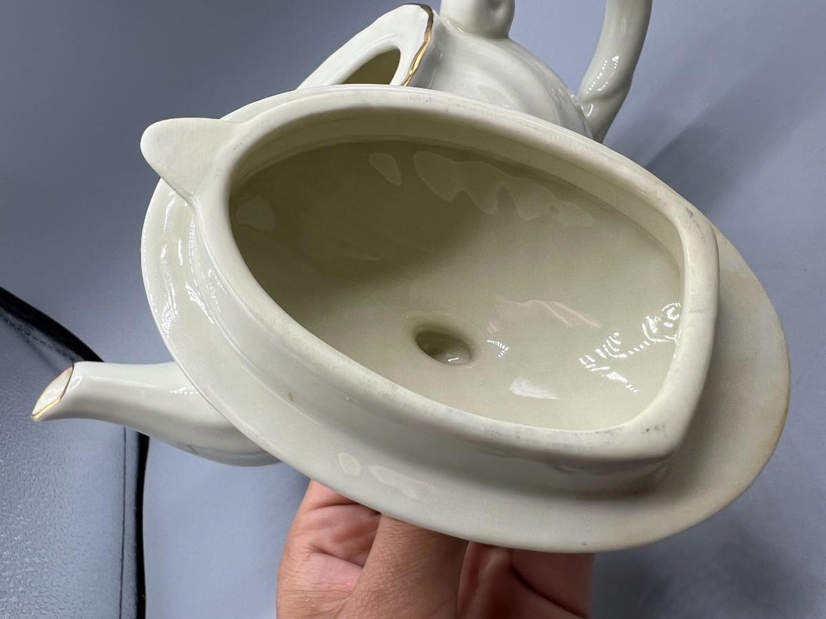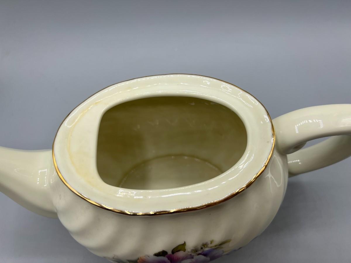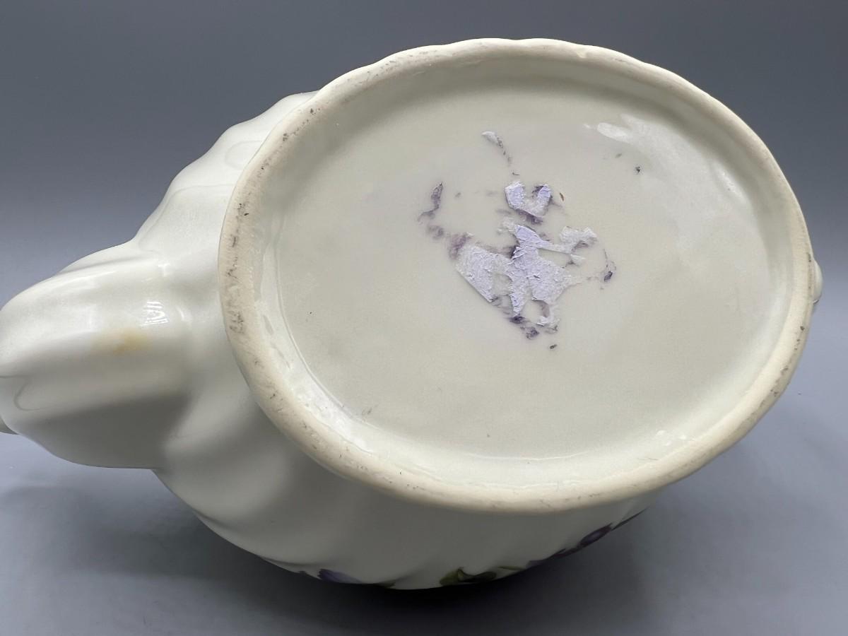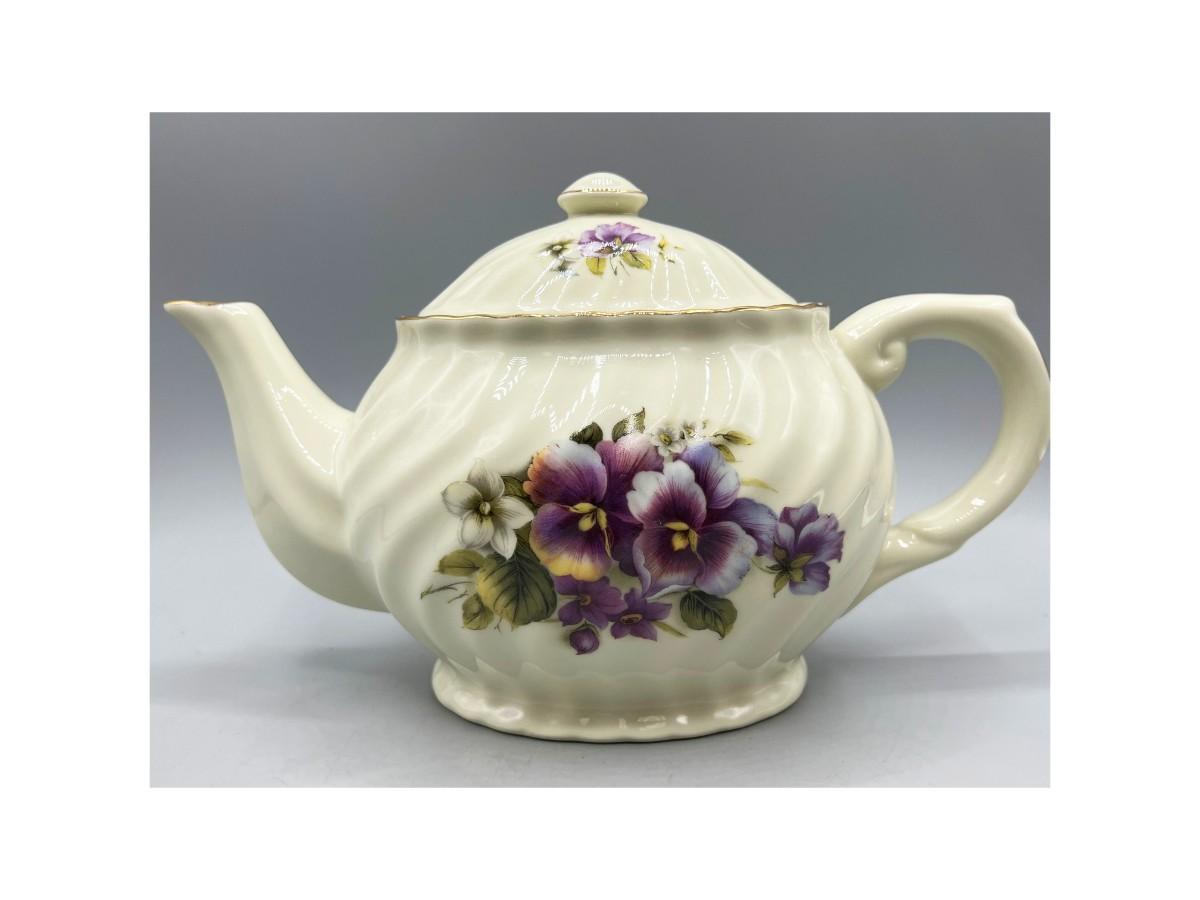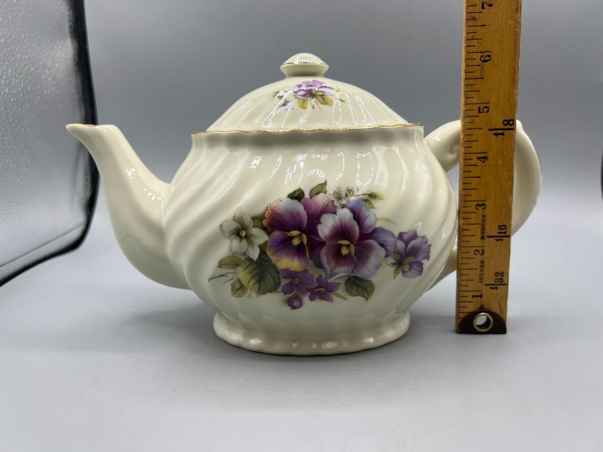 White Swirled Ceramic Teapot with Purple Violet Flowers