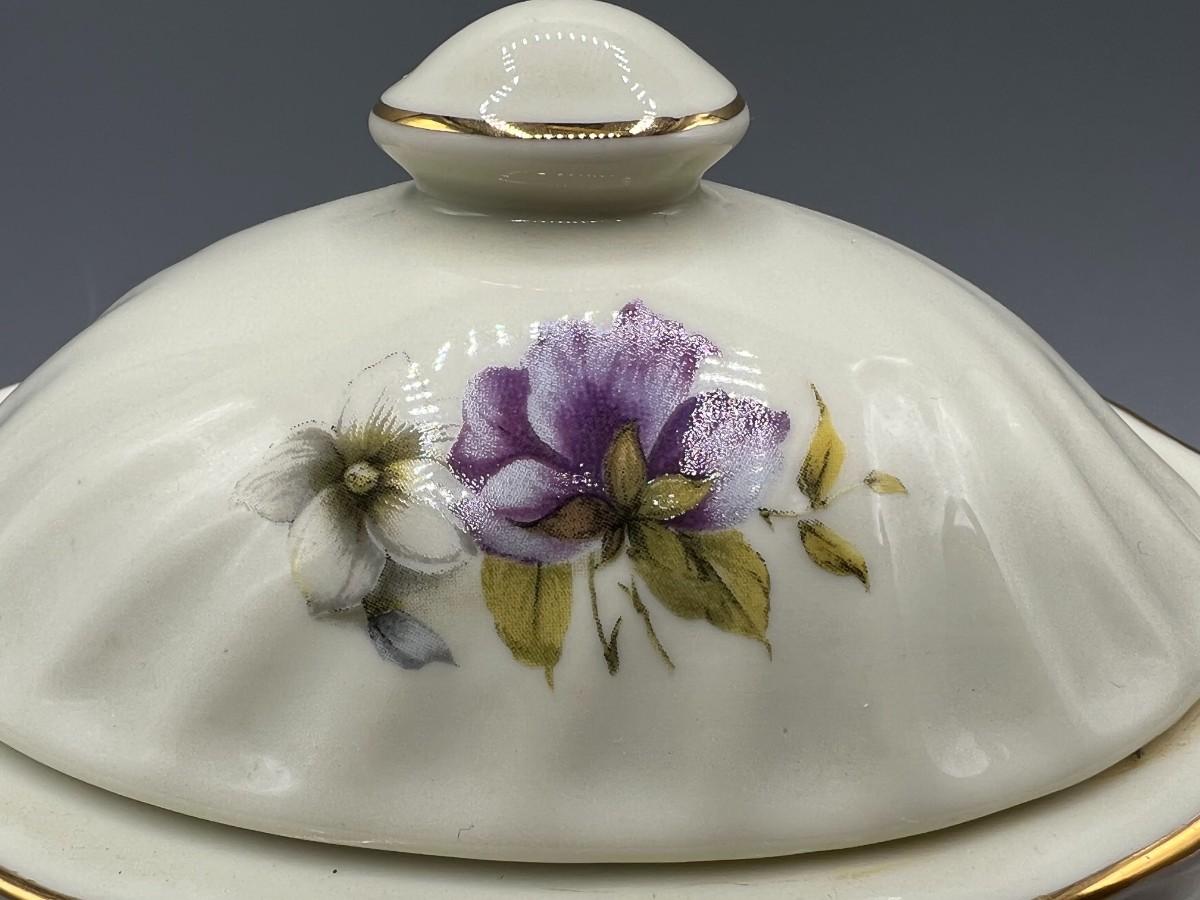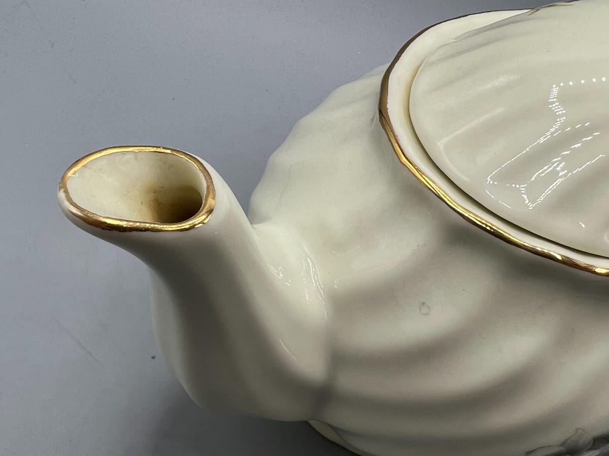 White Swirled Ceramic Teapot with Purple Violet Flowers. In good condition, displays nicely. Unbranded.