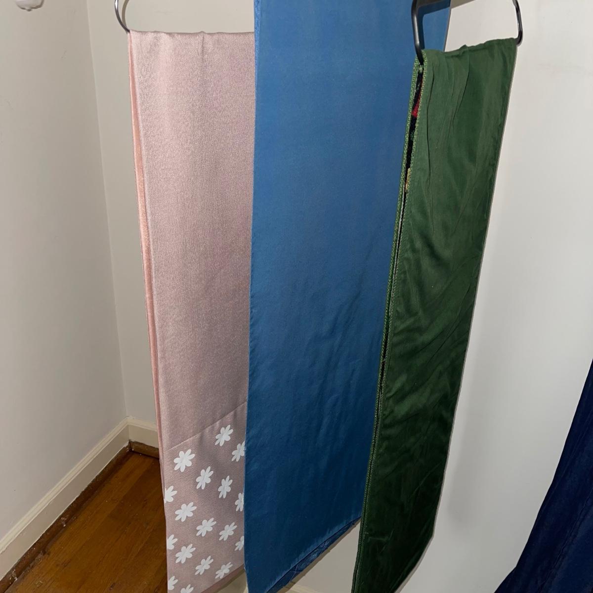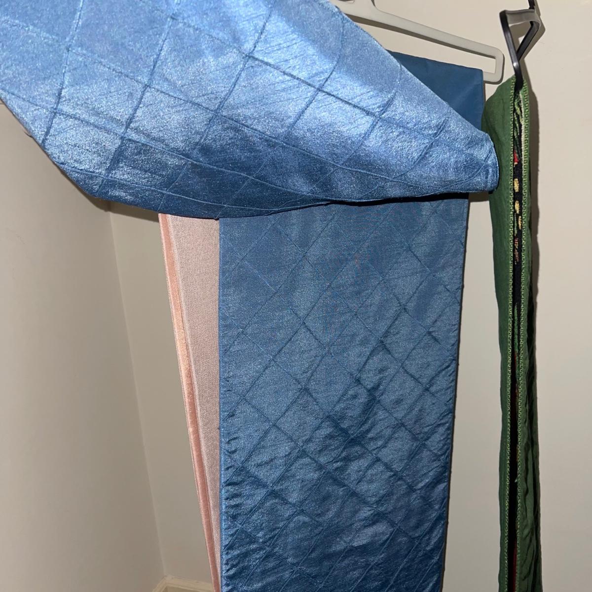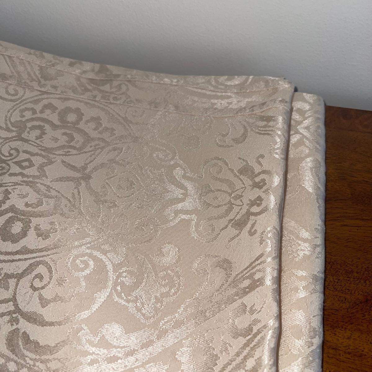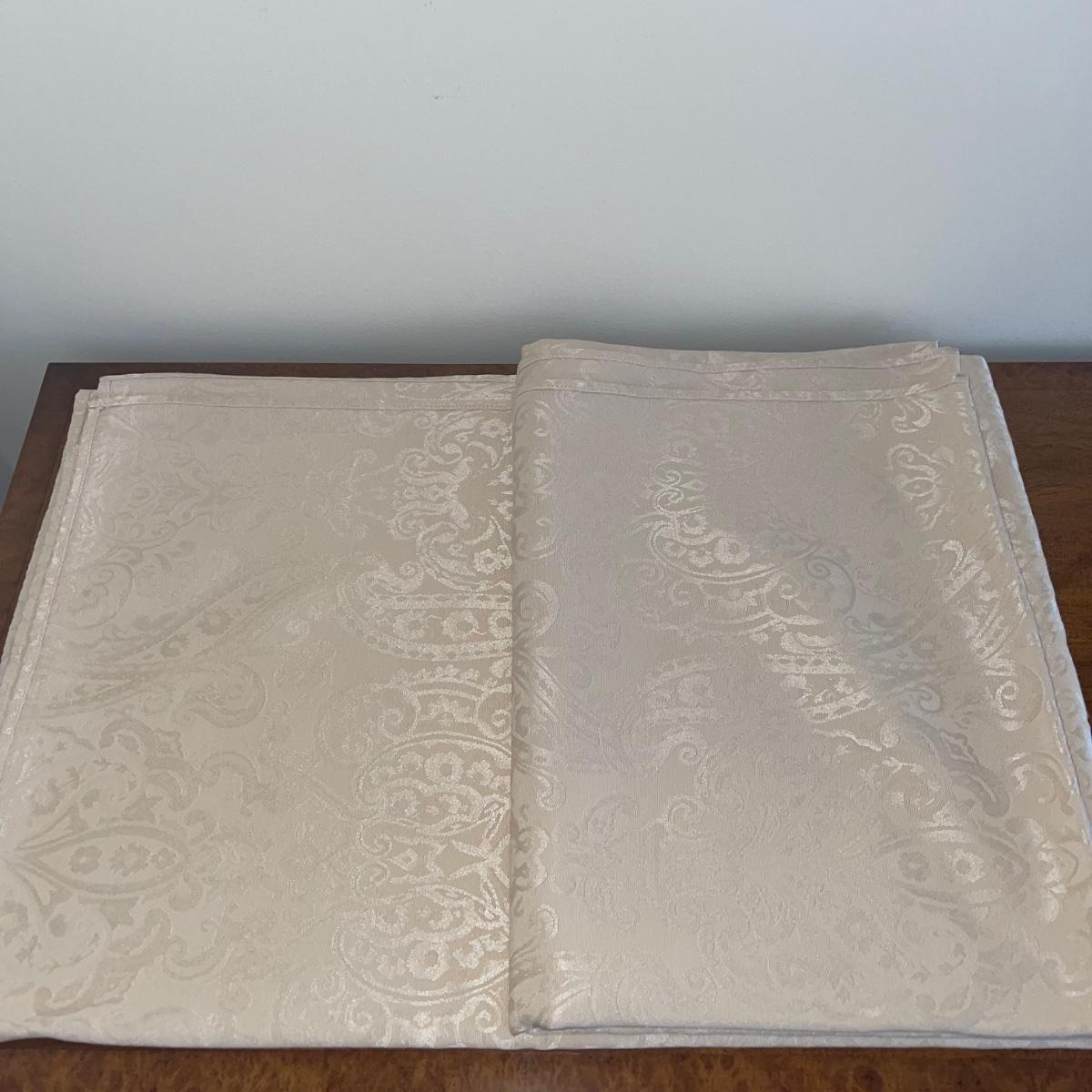 A variety of cloth napkins, placemats, doilies, table runners, table cloths; some in sets and some in few or singles. Some of them have embrodery detailing. The three colorful table runners measure 70 inches long.