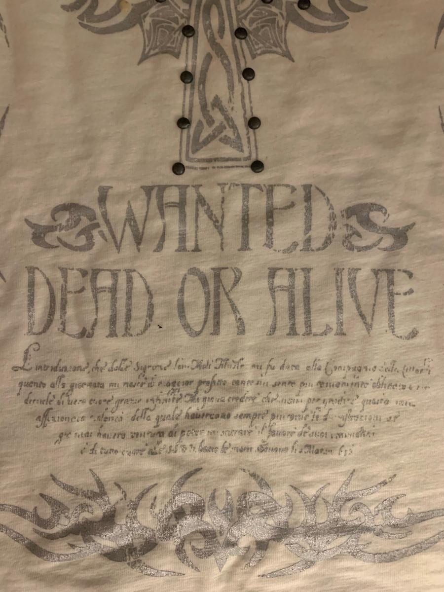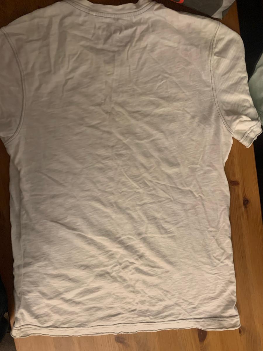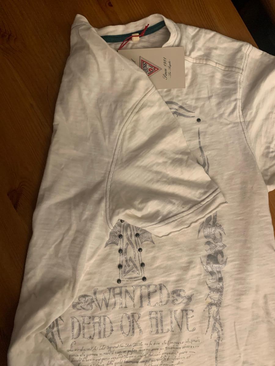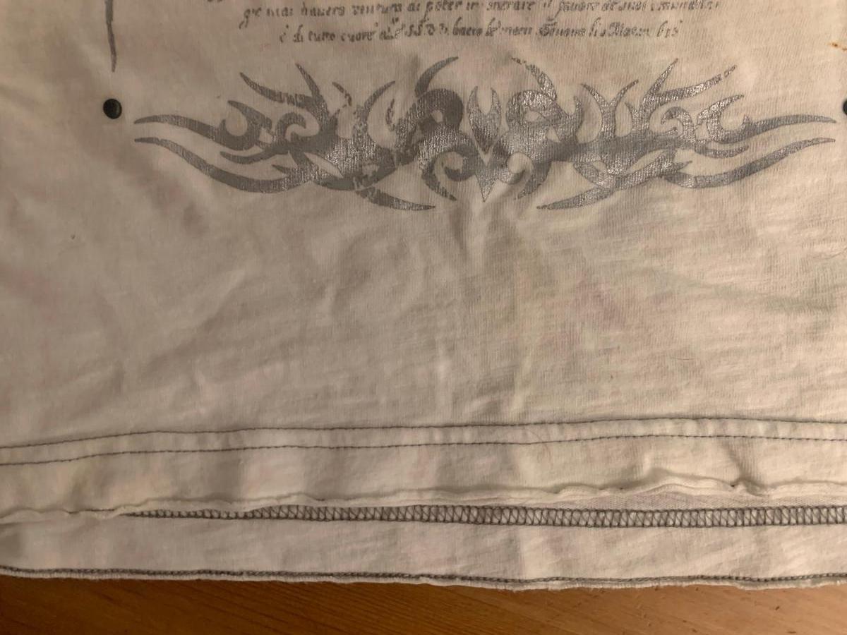 Mens white tee shirt style. has detailed stitching and metallic like studs on front. New with tags