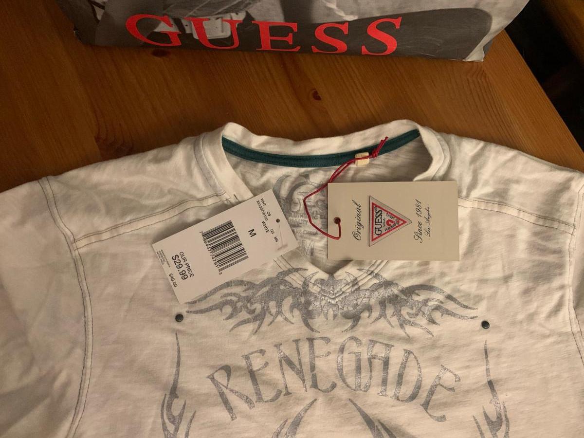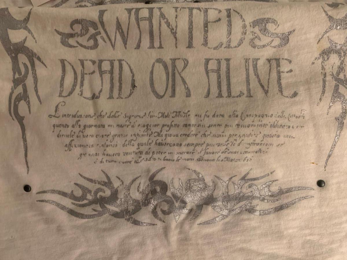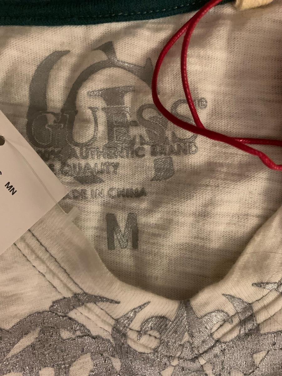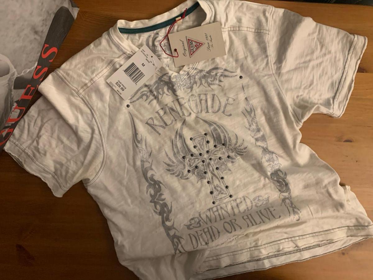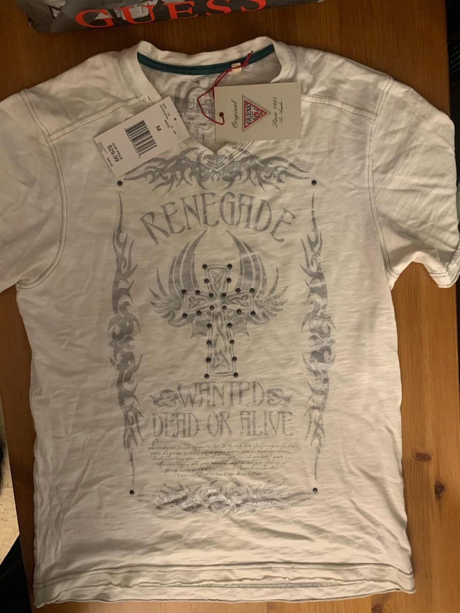 Mens white tee shirt style. has detailed stitching and metallic like studs on front. New with tags