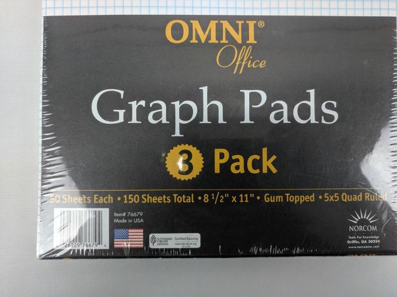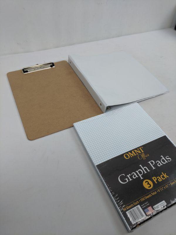 White Three Ring Binder, Clipboard, Graph Pads 3 Pack 50 Sheets 8.5" x 11" - New