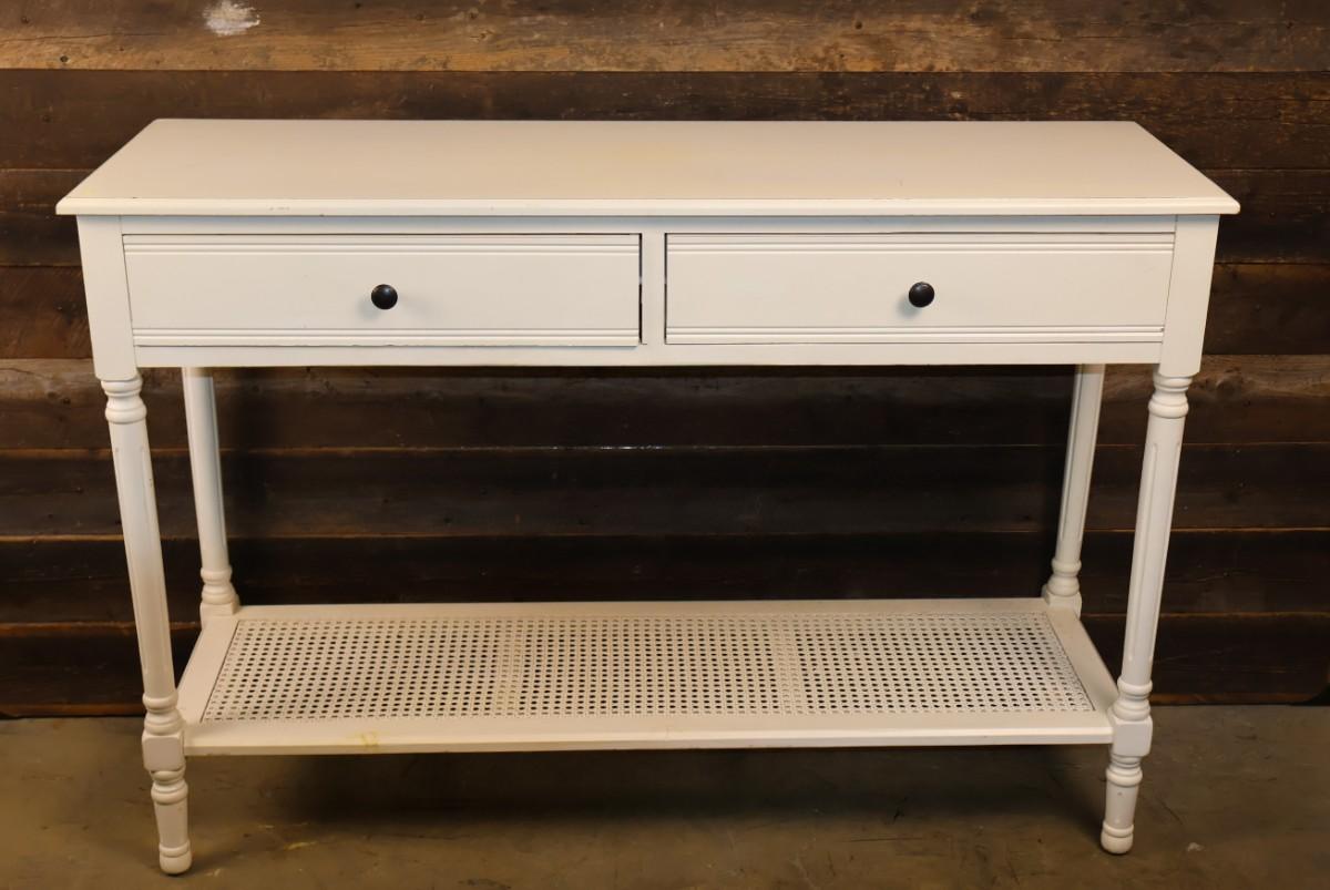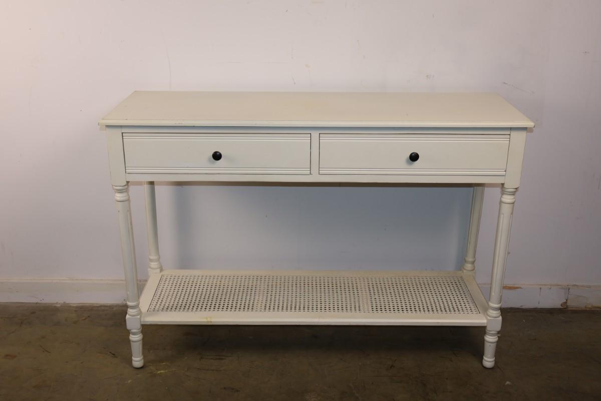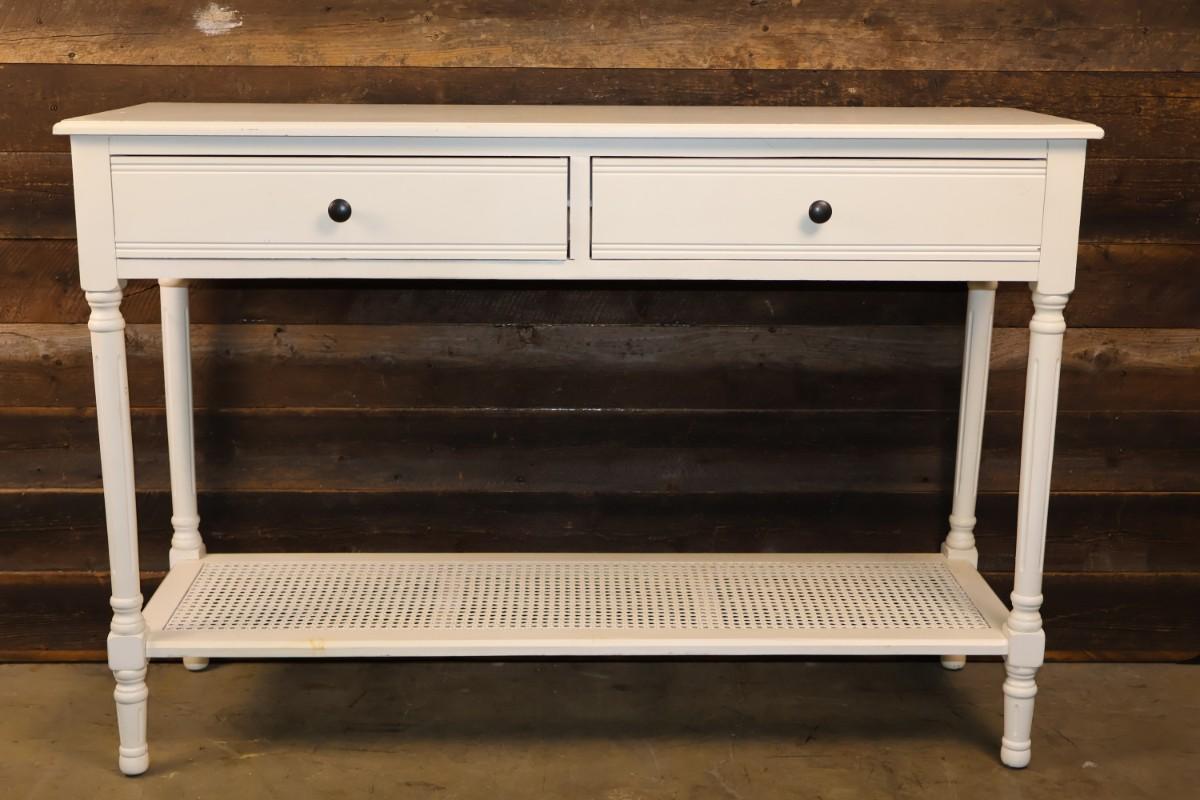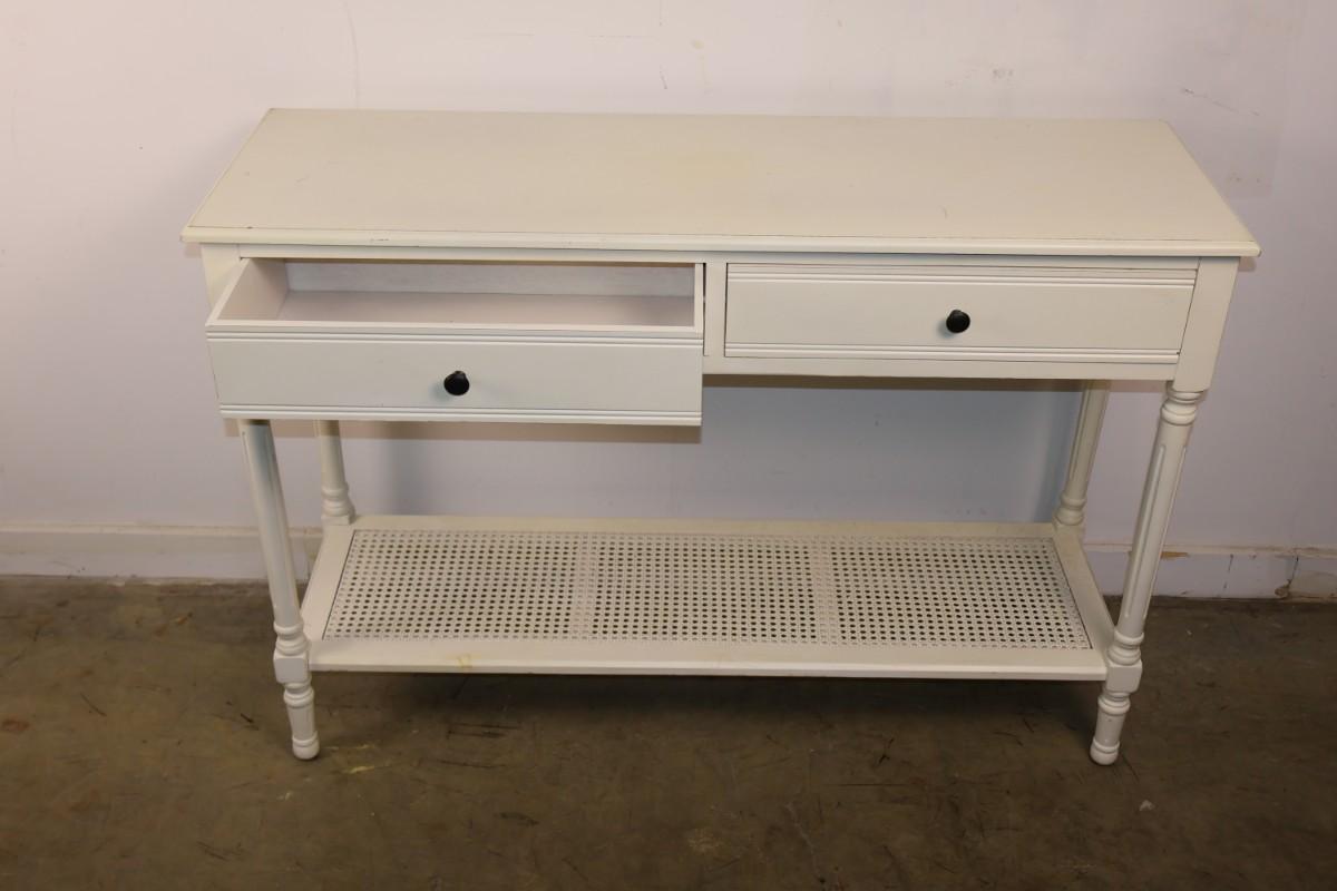 White Two Drawer Console Table. 47 3/4" x 16" x 32 1/2" high.
