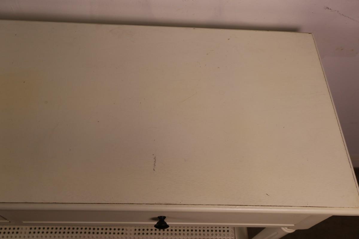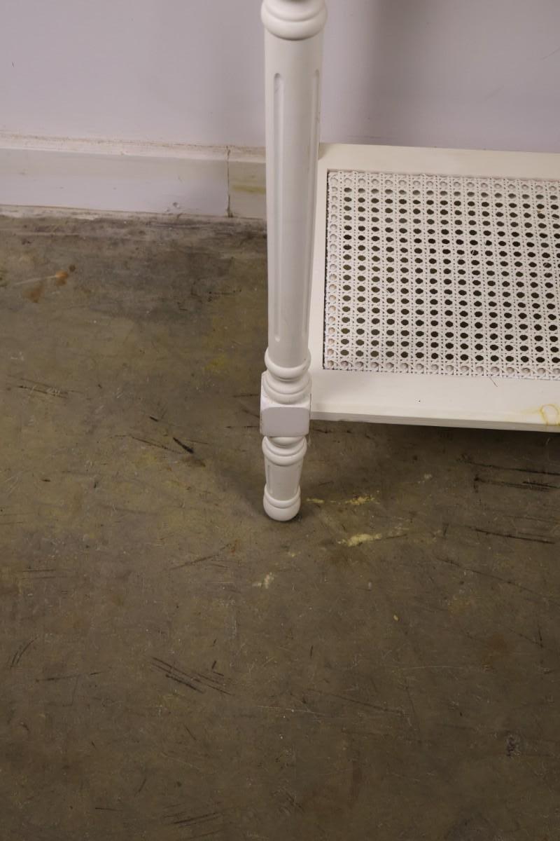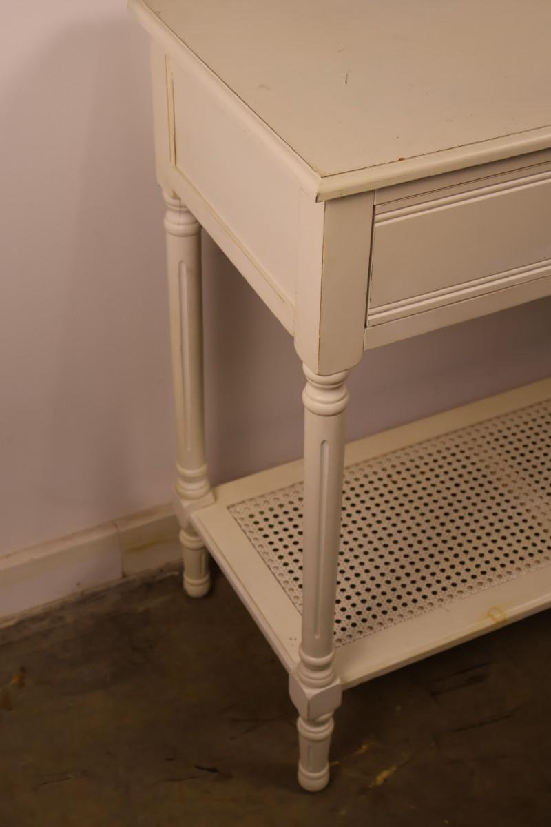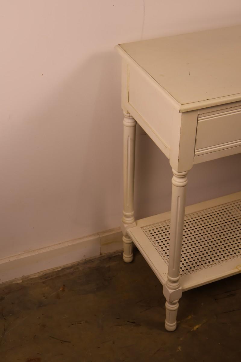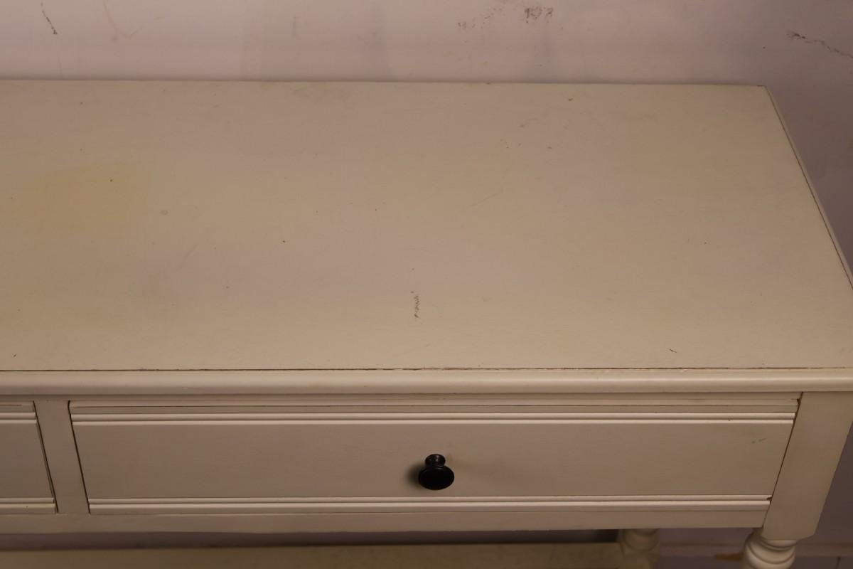 White Two Drawer Console Table. 47 3/4" x 16" x 32 1/2" high.