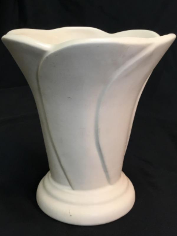 Beautifully classic, Royal Haeger, Art Deco Vase. Mint Condition. No chips, cracks or flaws of any kind. . This Vase is from the Royal Haeger line, and has the highly collectable matte white finish and art deco shape. Measures: 8 3/4" tall, 7" across top rim, 4 3/4" across bottom.