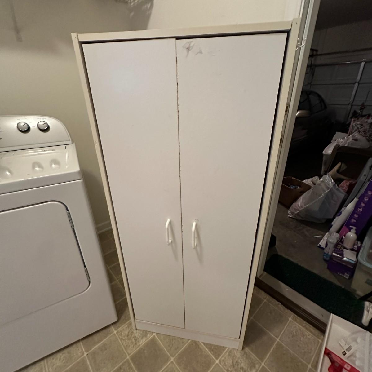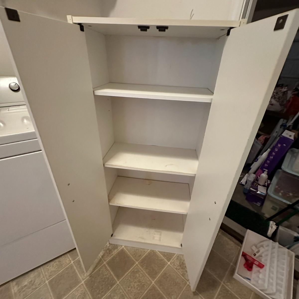 White Utility Cabinet - fair condition - 52" x 23" x 12"