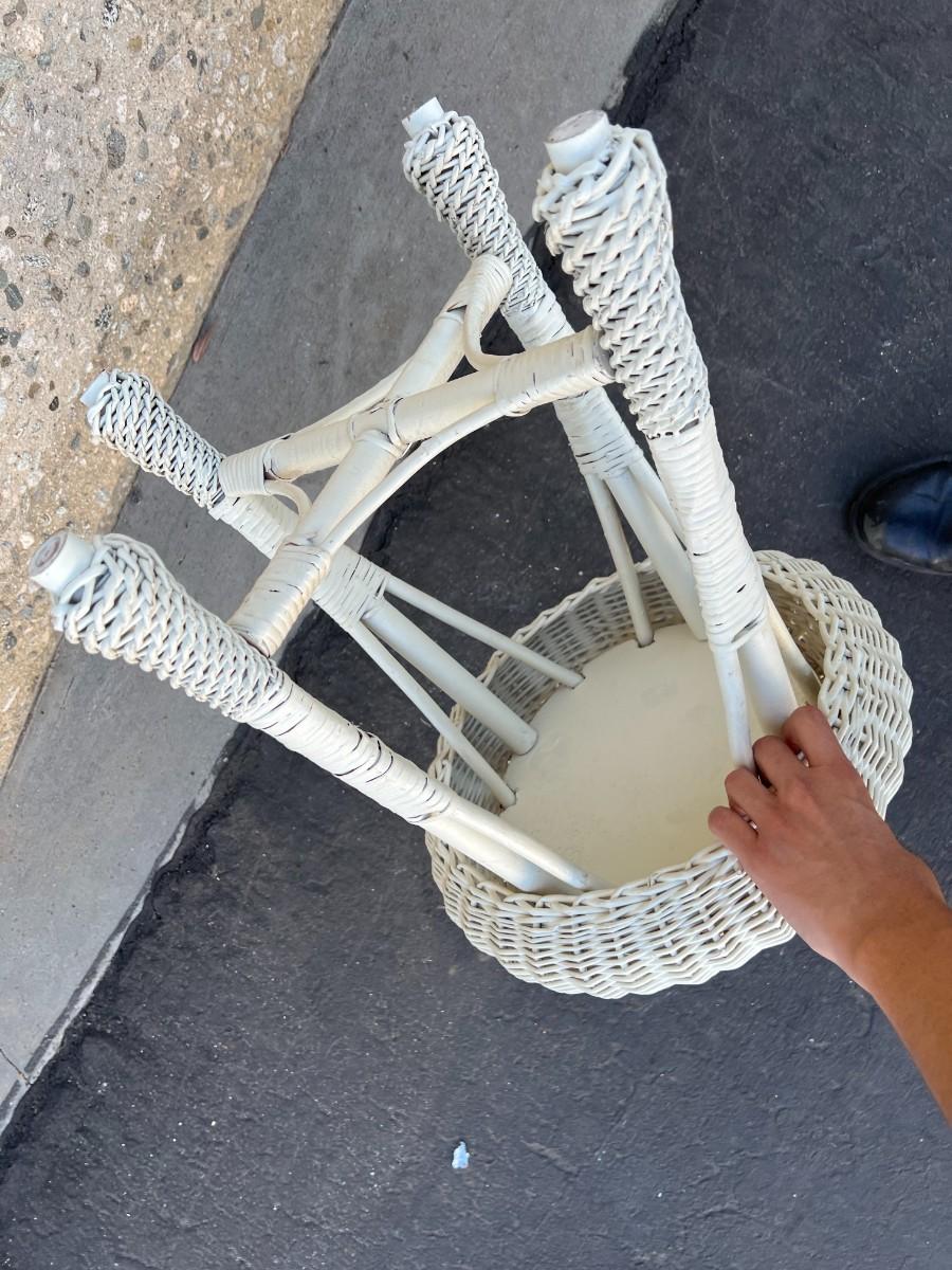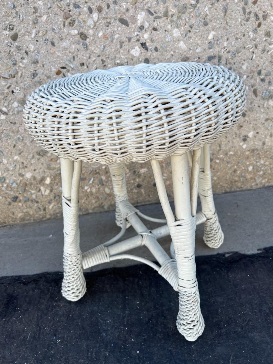 White Rattan Weaved Patio Furniture Display Stool