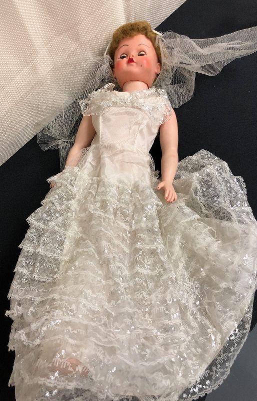 Vintage doll, 29" tall, Rubber plastic wear from play