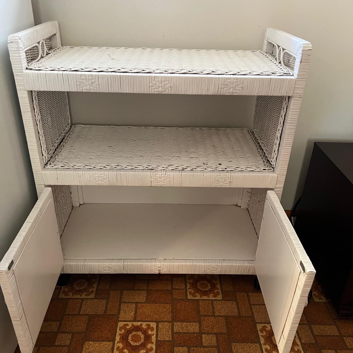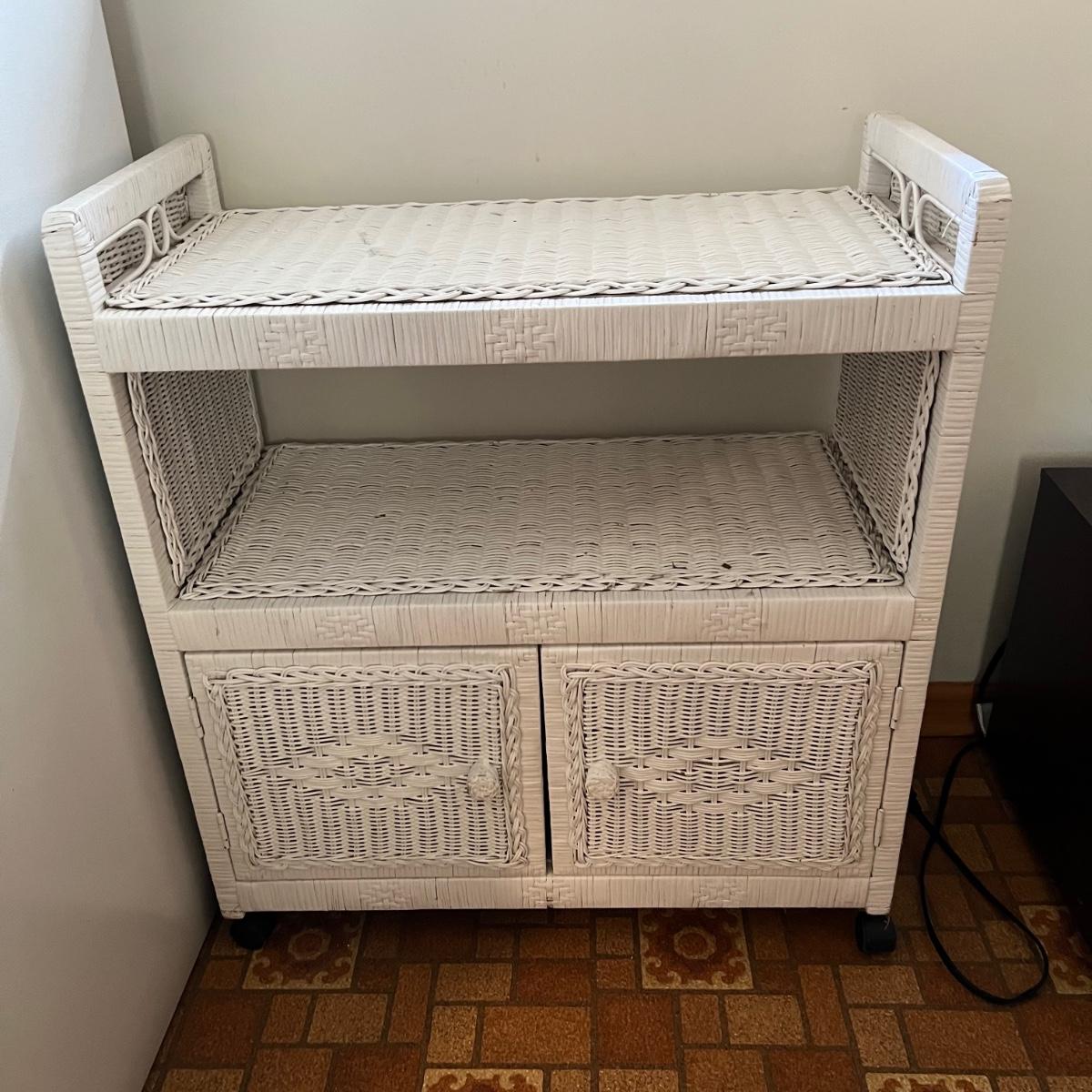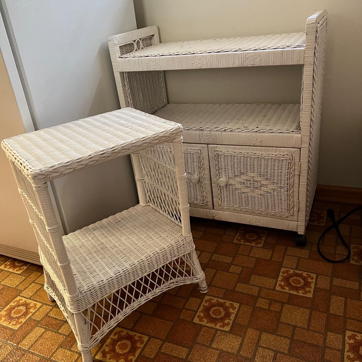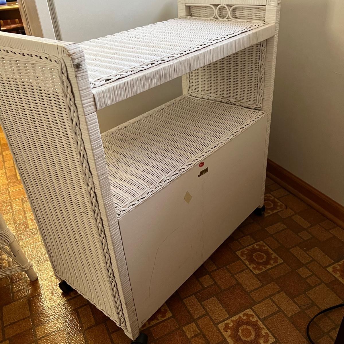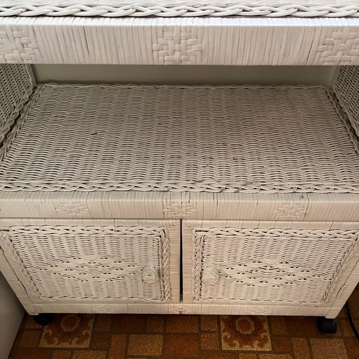 White Wicker Rolling Cabinet & Side Table (K-RG)