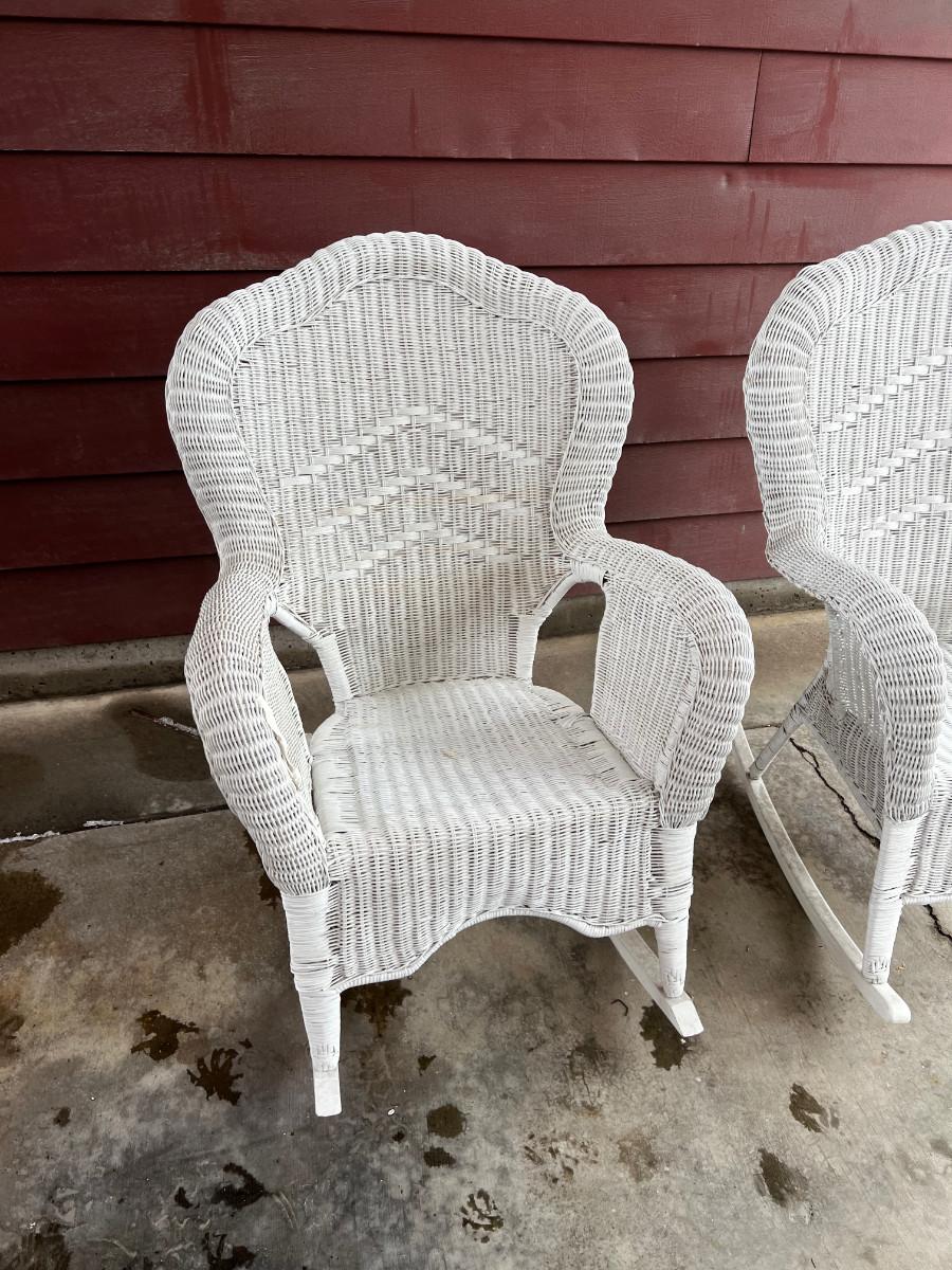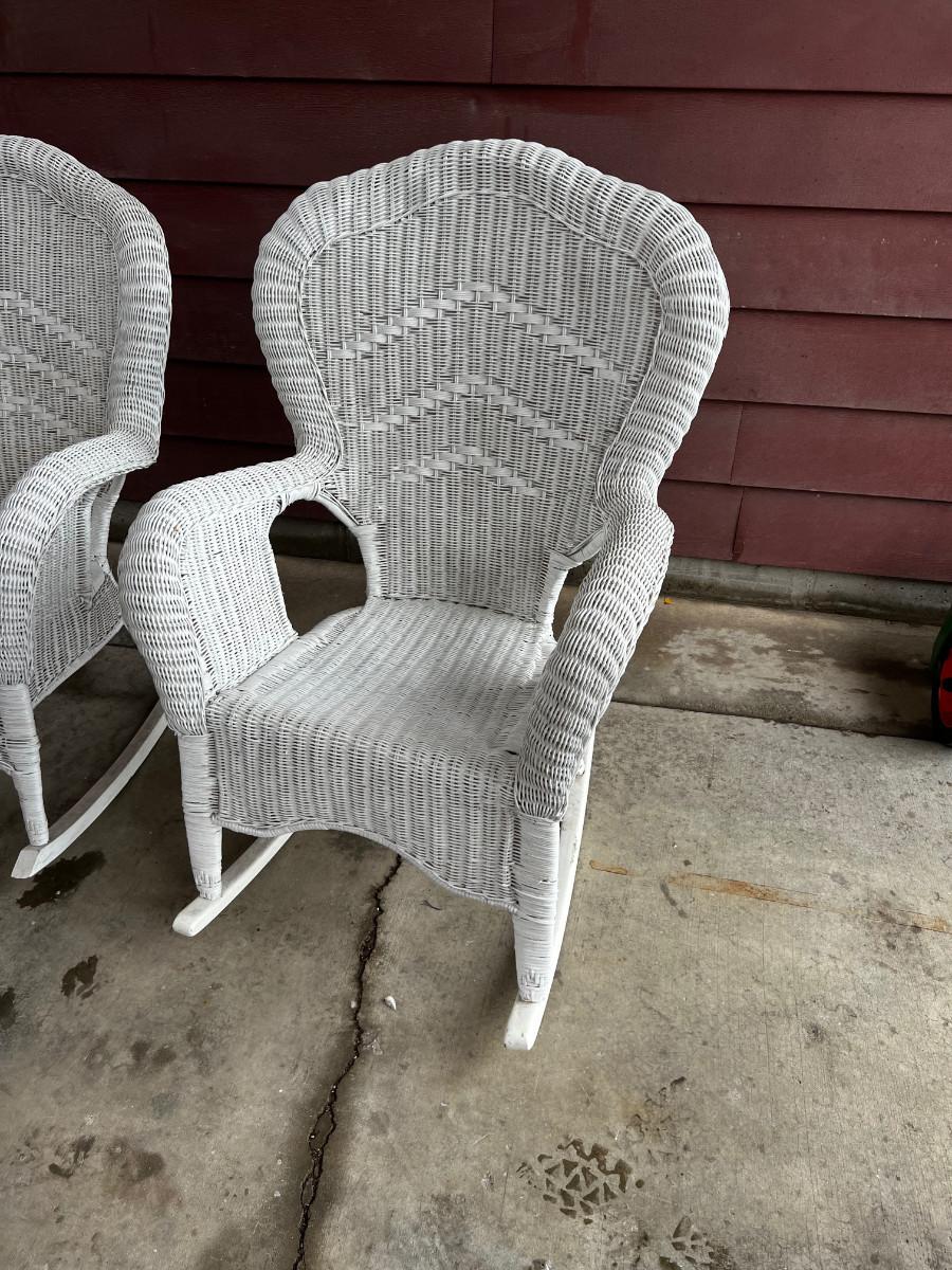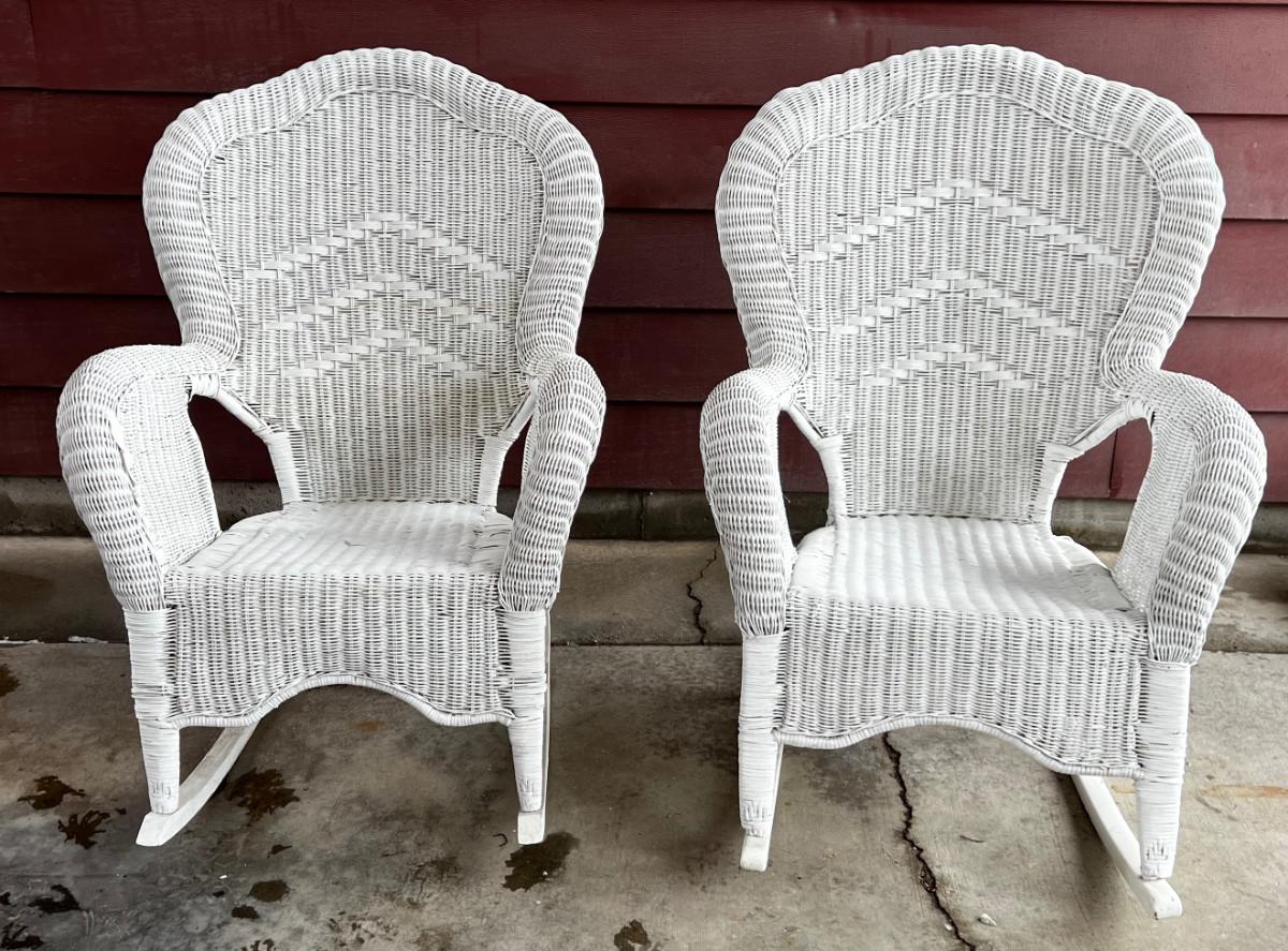 White Wicker Rocking Chairs, Pair