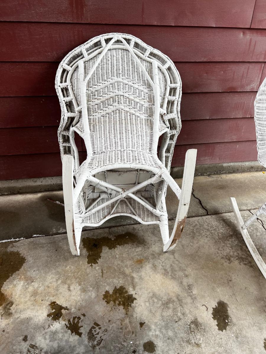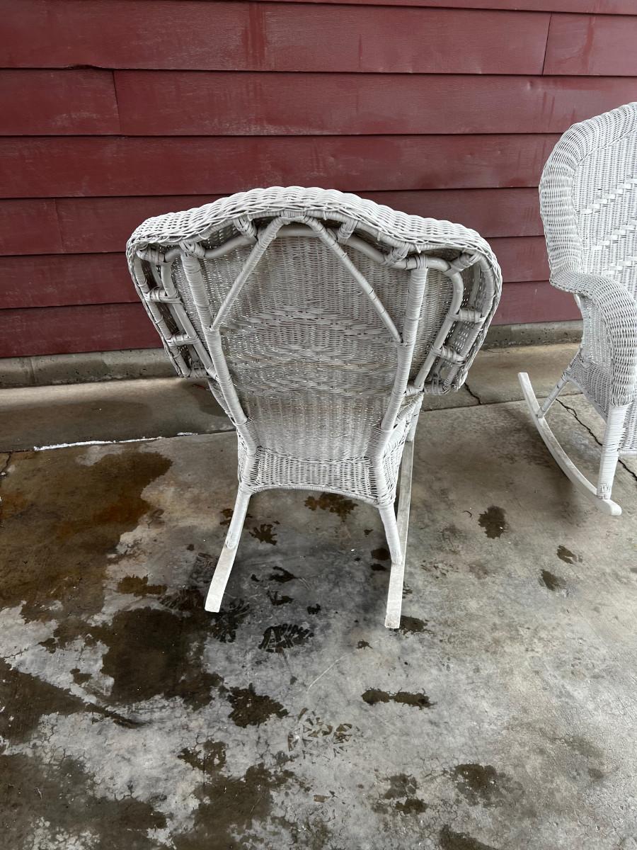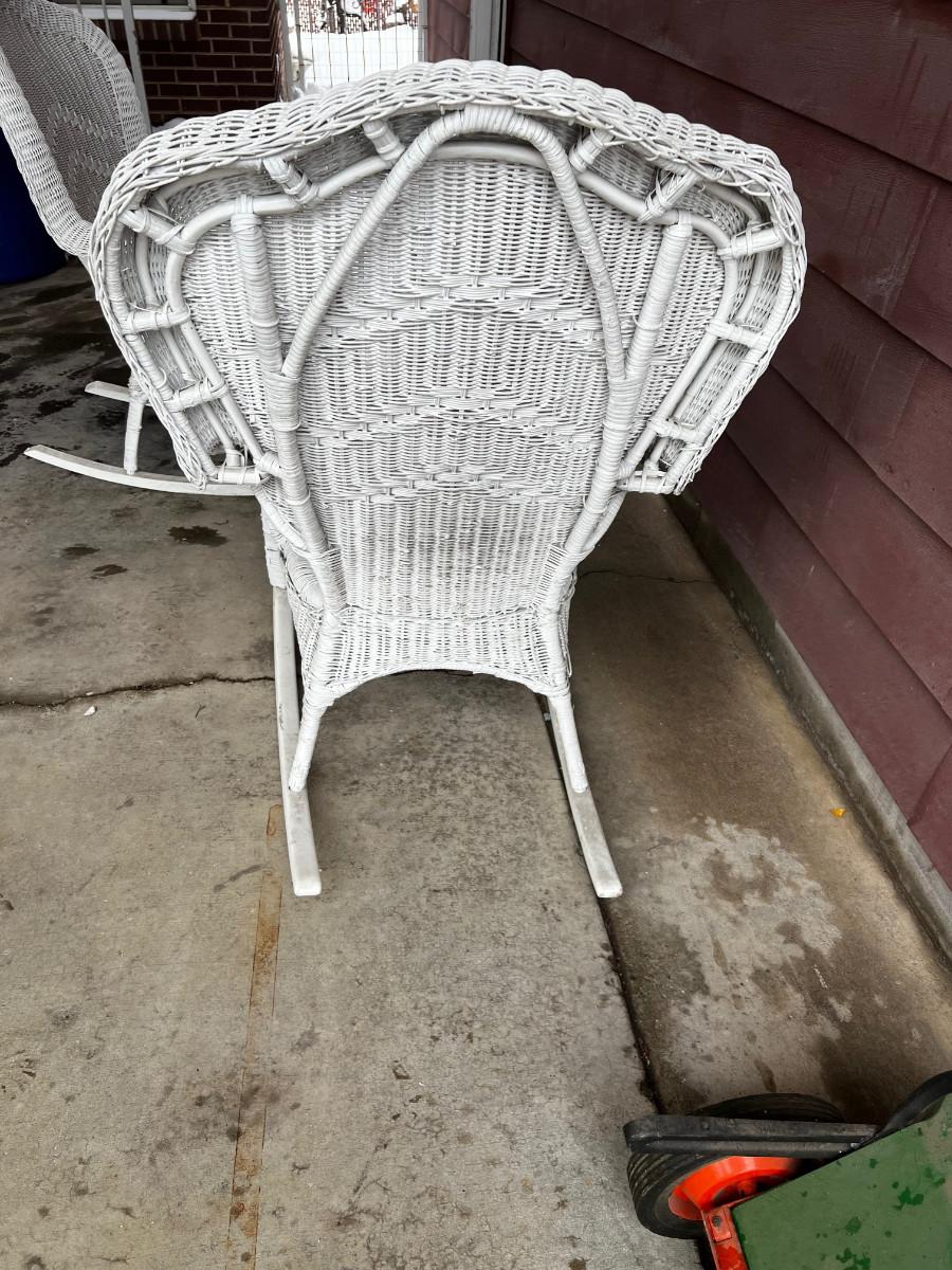 White Wicker Rocking Chairs, Pair