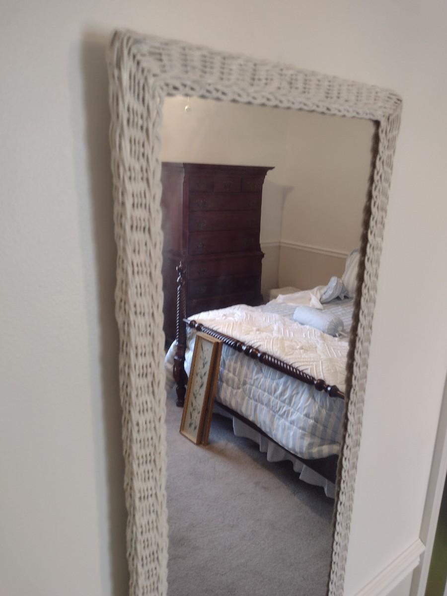 White Wicker Weave Framed Wall Mirror