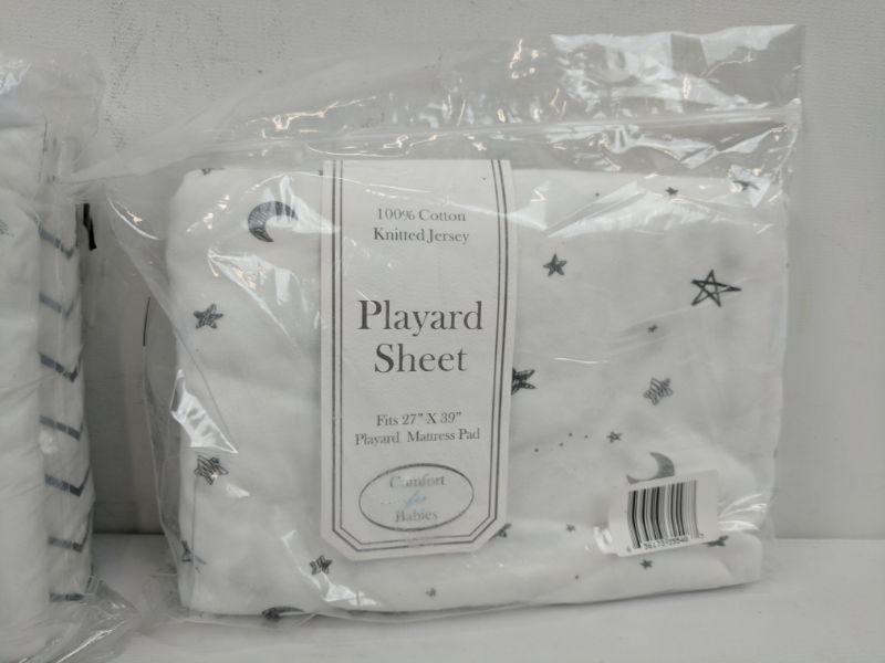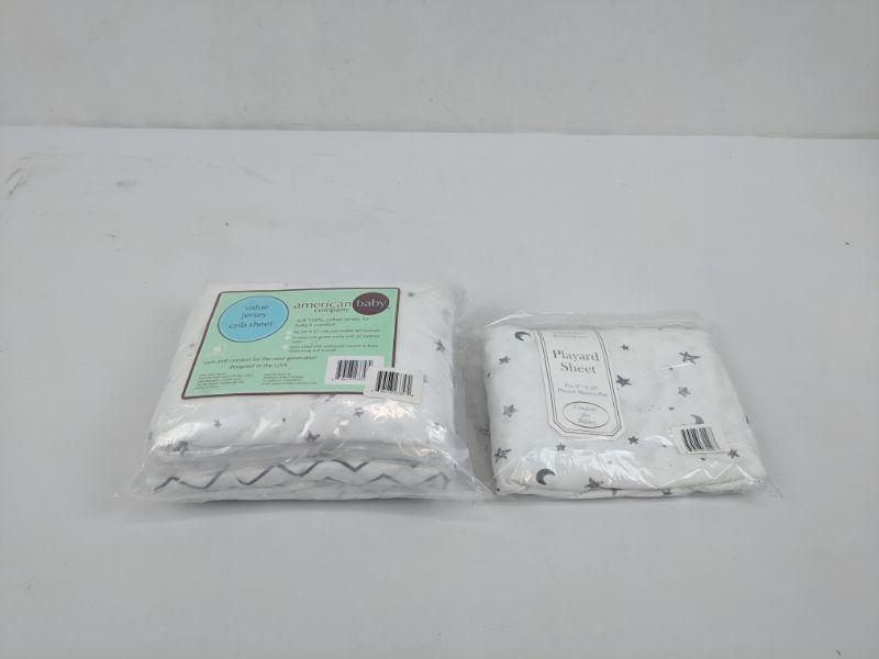 White with Stars & Moons Jersey Crib Sheet Set & Playard Sheet - New