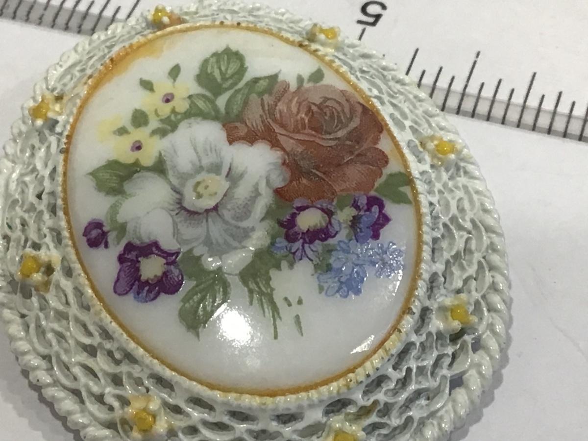 White With yellow Baby Rose with large Painted Floral Scence on Ceramic/porcelin.