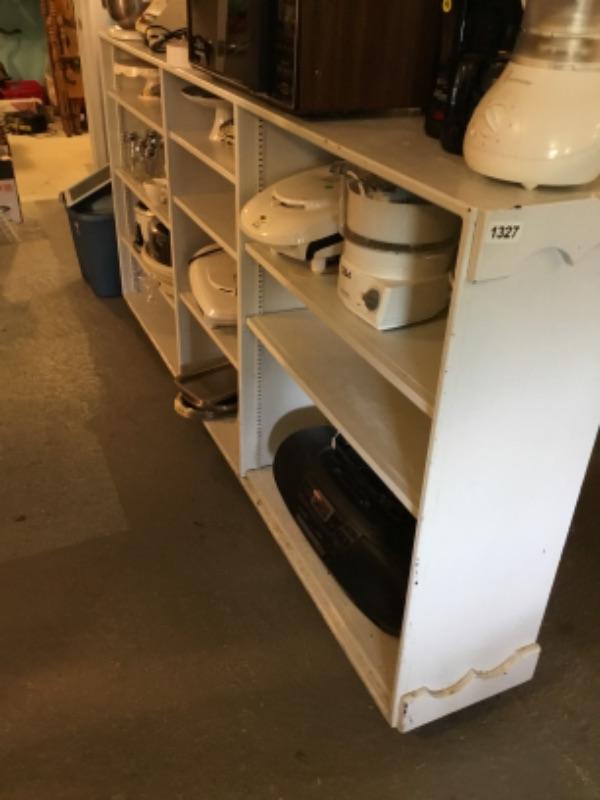 White wood shelf 85 1/2 inches long 41 inches high 12 inches deep lot 1327