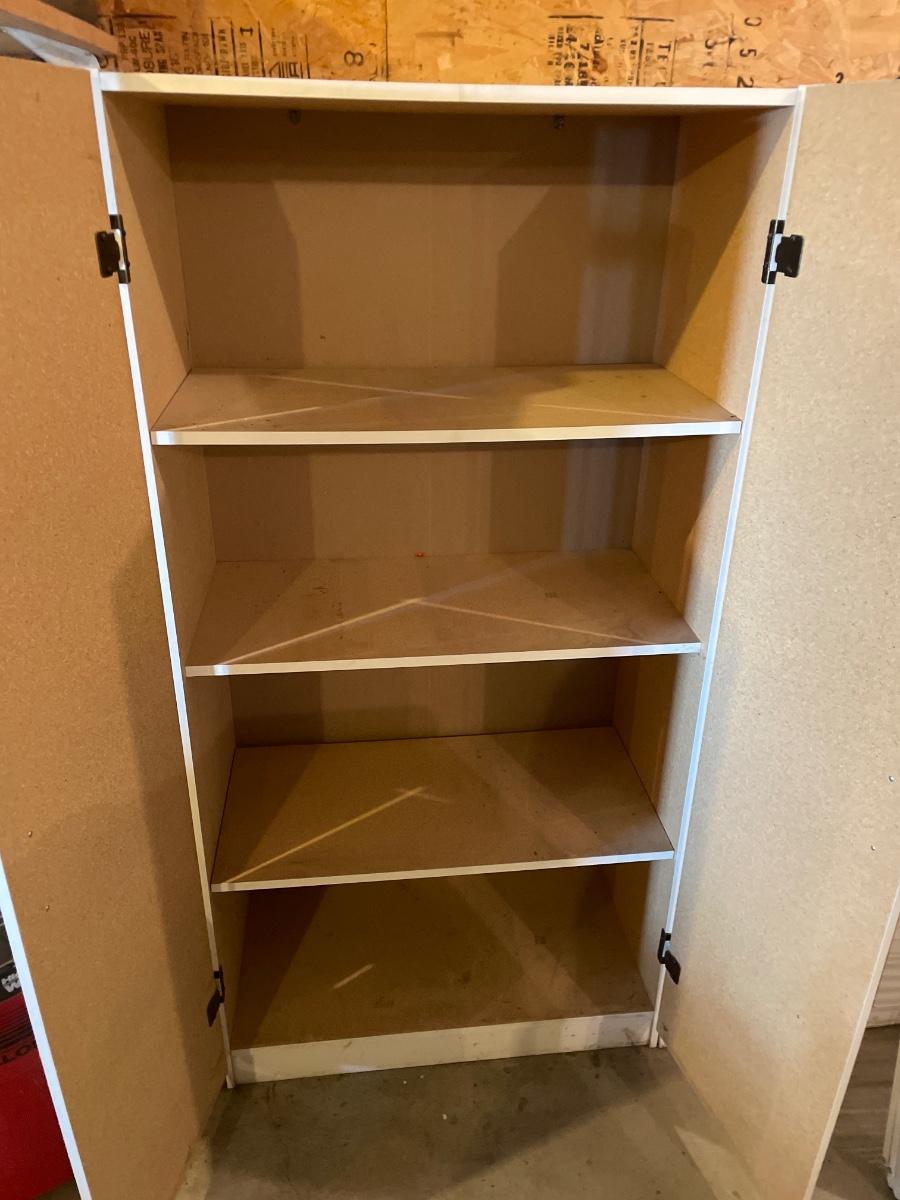 White wood shelving unit dimensions are 60 inches tall by 30 inches wide by 16 inches deep.