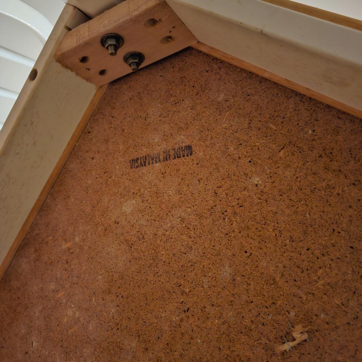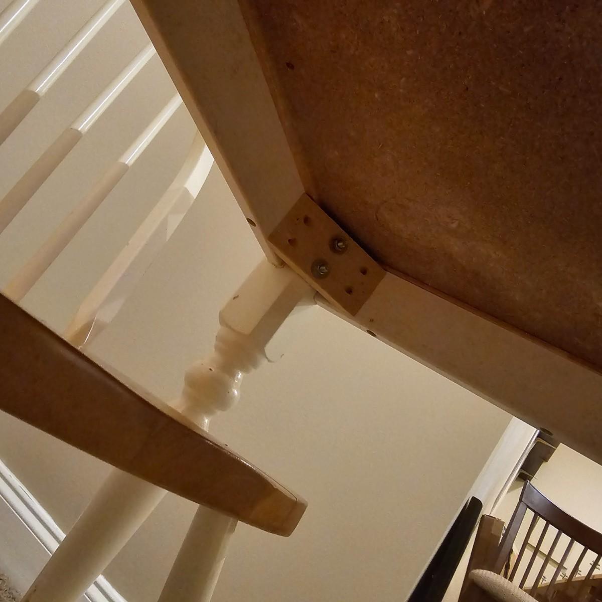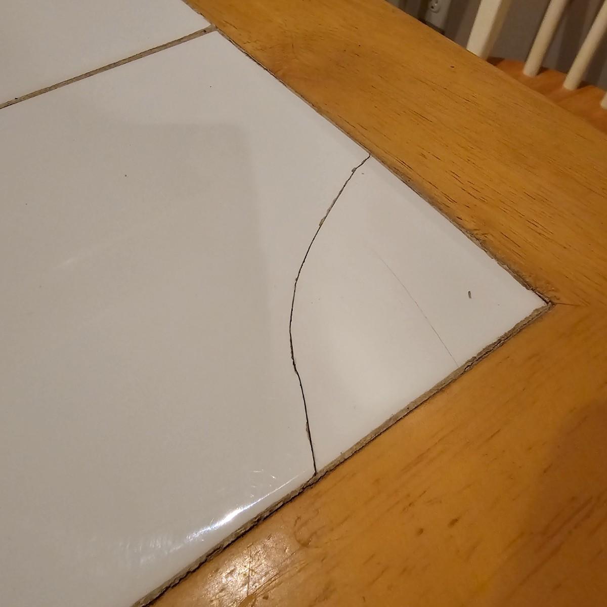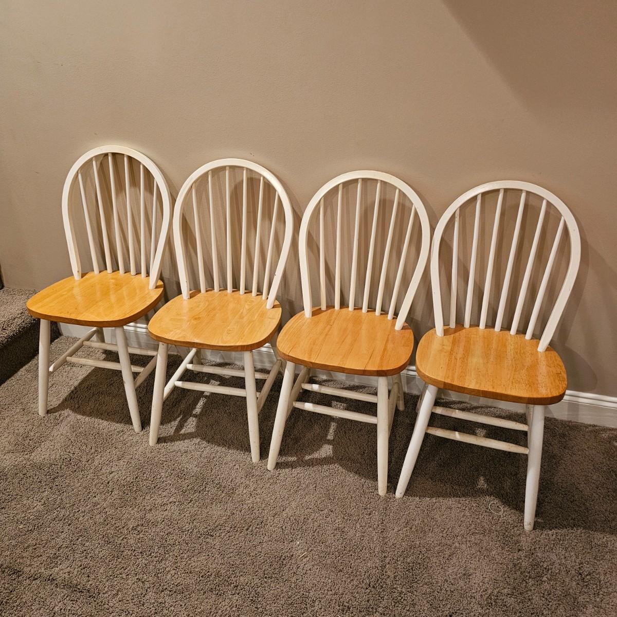 Rectangular table with white legs and blonde wood top edge. Center is white tile squares; one corner tile has chip in it. Table measures 47" x 29" x 29"H. Four matching chairs have white backs and legs, blonde wood seats. Chairs are 17.5" x 18" x 36"H, with an 18" seat height. Table and chairs need some cleaning. See photos for details. Local pickup only. Winning bidder must bring assistance to help move and load this item due to its weight and/or size. This lot is located in the basement and will need to be either moved up a flight of stairs to the main level and then down a few stairs at the entry, or it can be moved out the back door of the basement and carried up an incline on the side of the house.