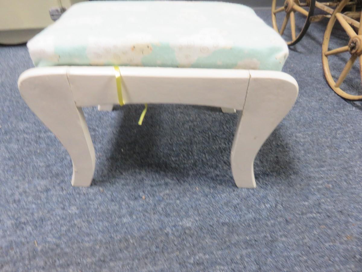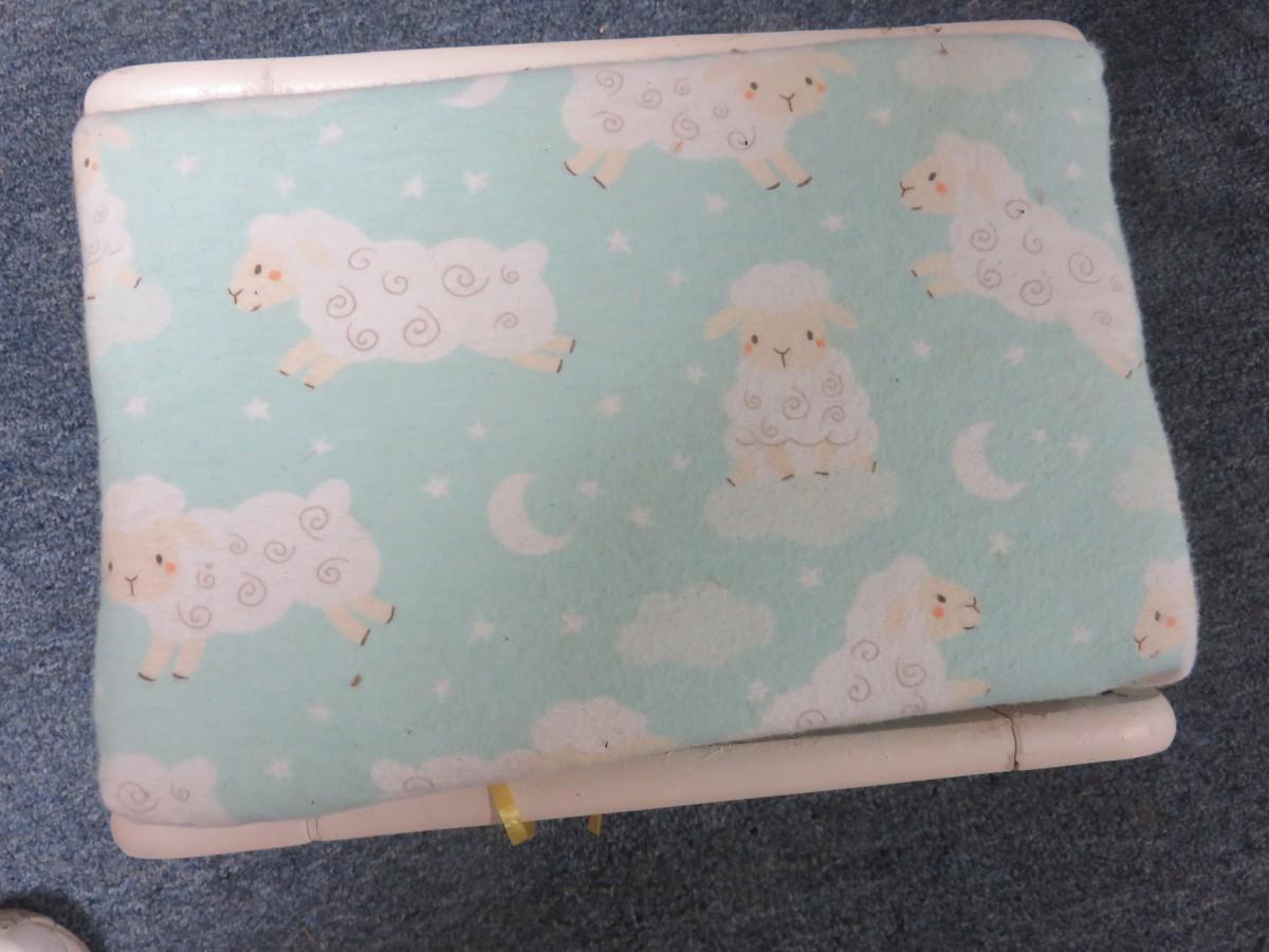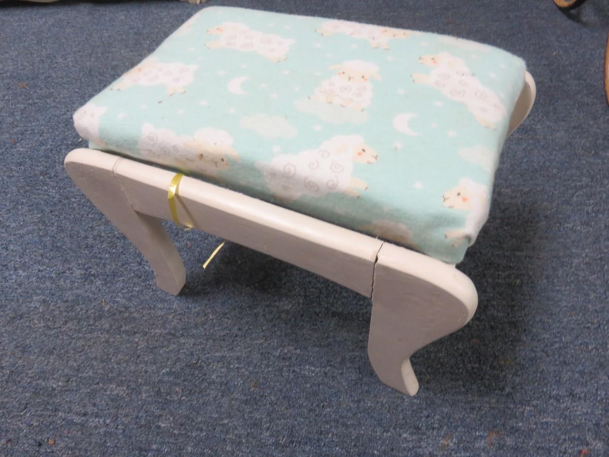 White Wooden Footstool with Baby Sheep Fabric 13 x 9 1/2 inches