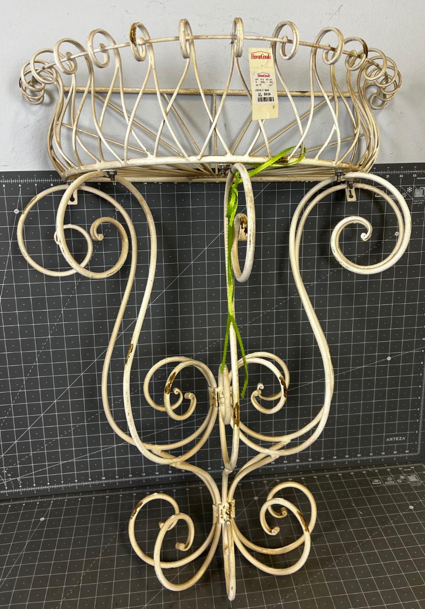 White Wrought Iron Sconce Basket for Porch Garden