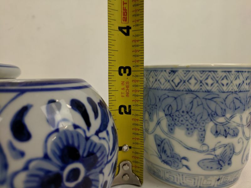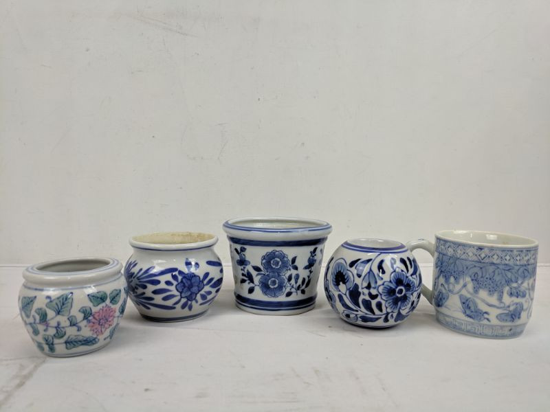 White/Navy Decorative Flower Dishware, 5 Pieces