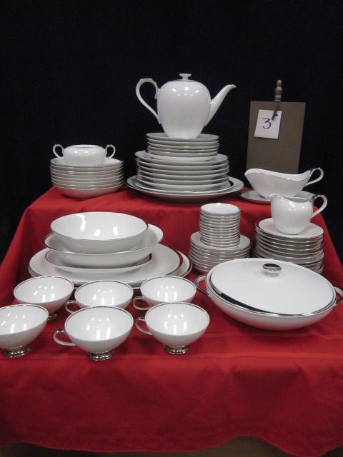 White/Silver Fine China/ Crown Jewel, Barvaria, Germany 72 pcs