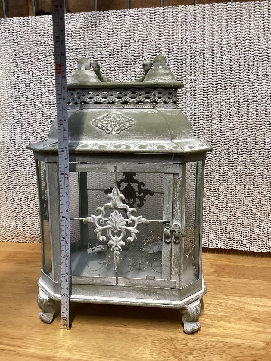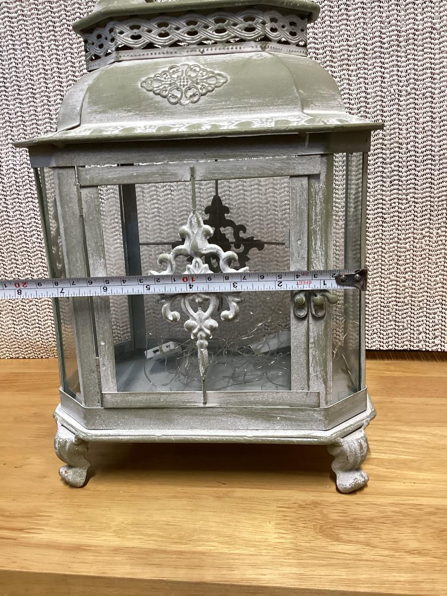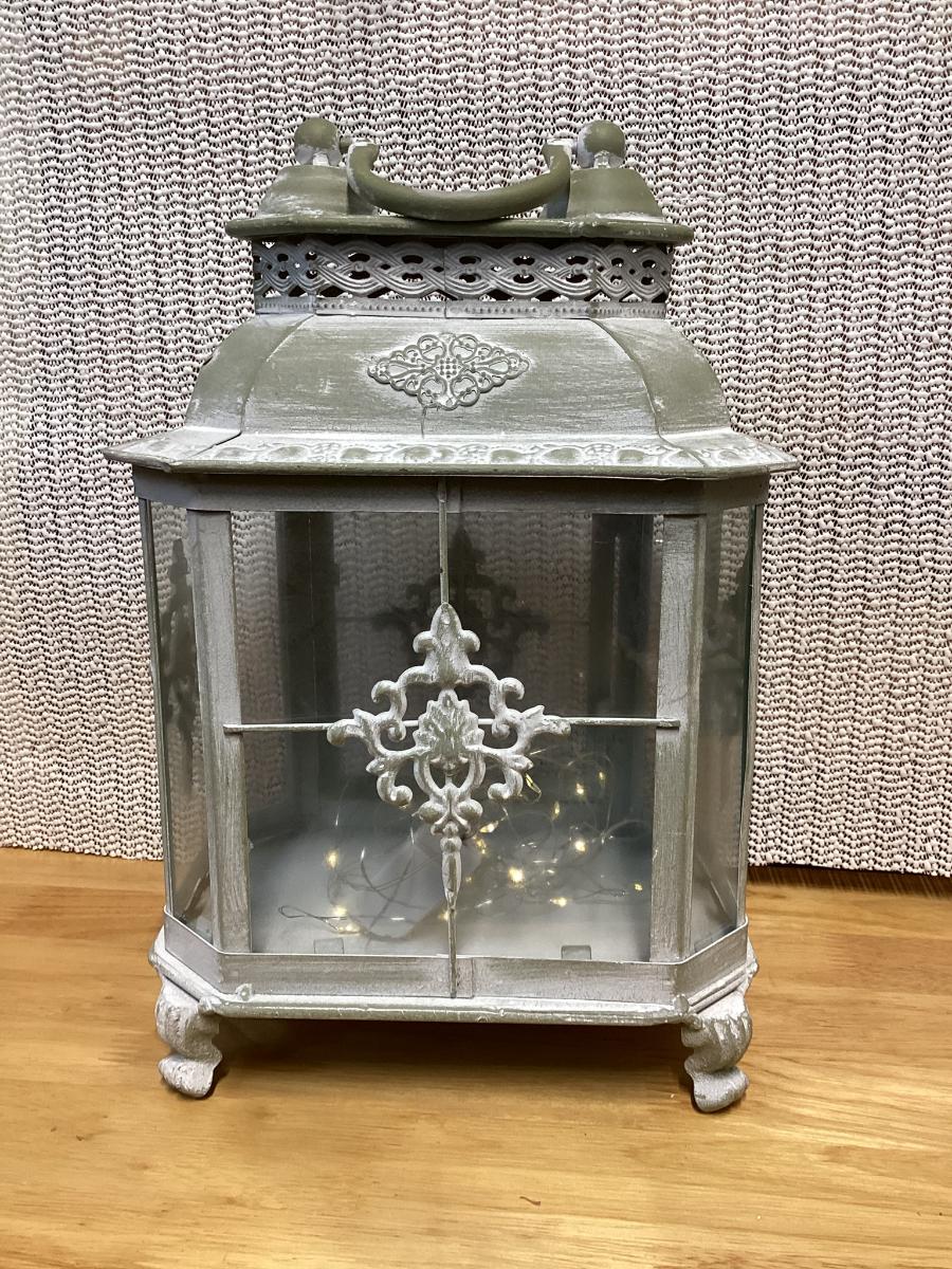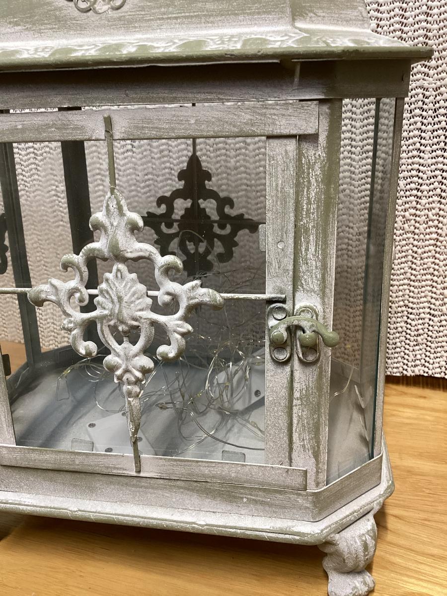 whitewash metal lantern with battery led light strips in it