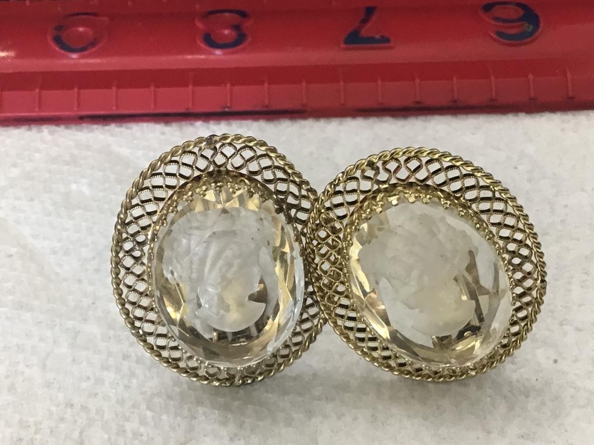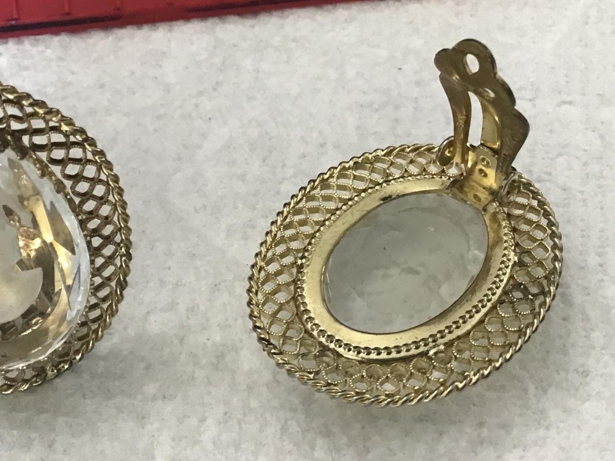 Whiting & Davis Mid-Century Glass Intaglio Cameo Large Clip ons