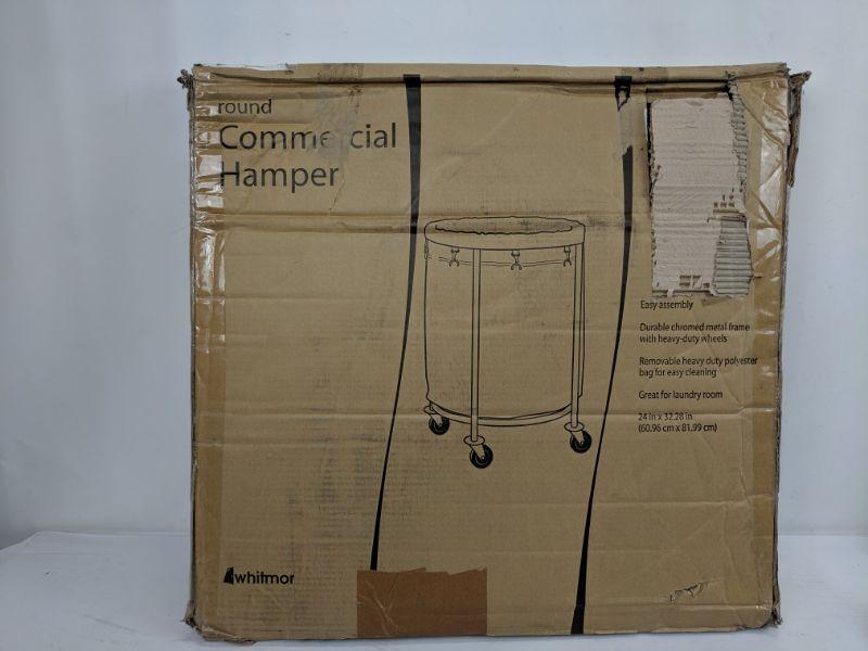 Whitmor Round Commercial Hamper, White/Chrome - New
