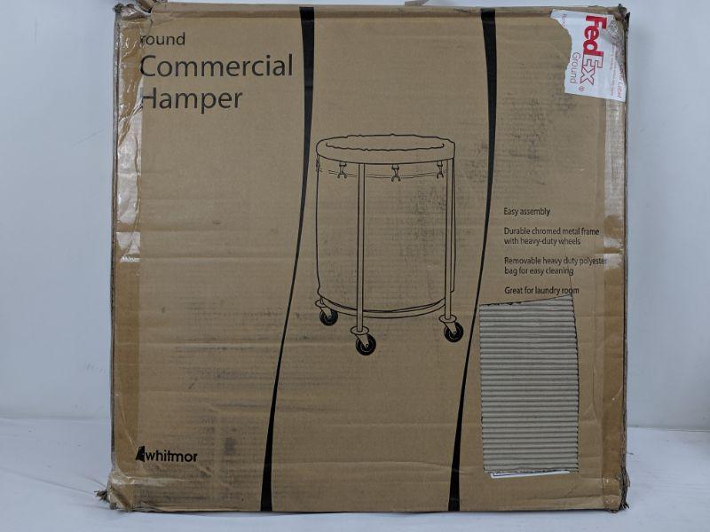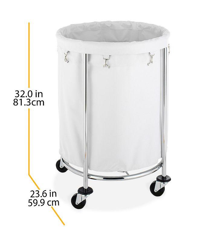 Whitmor Round Commercial Hamper With Wheels, White & Chrome - New