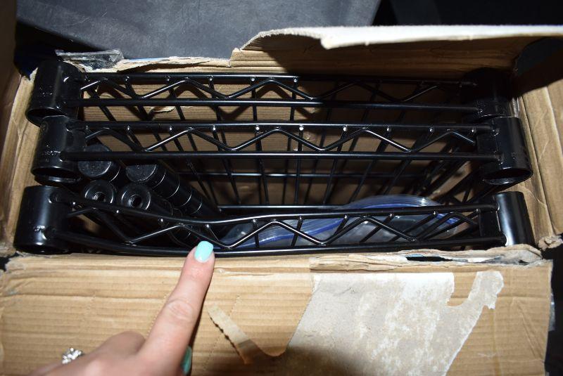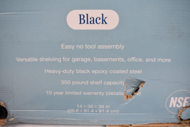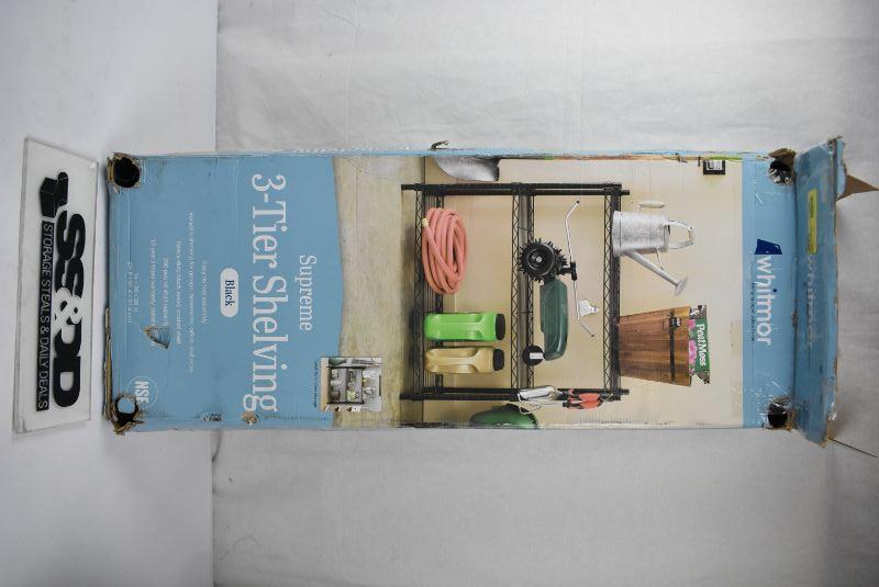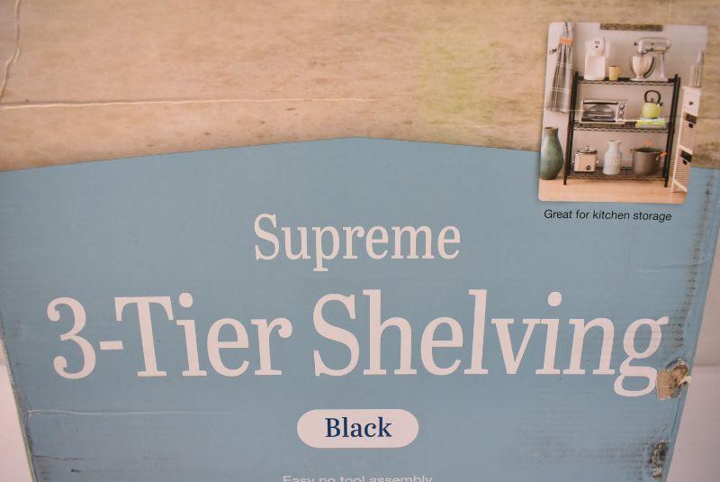 Whitmor Supreme 3 Tier Shelving Black. 1 shelf bent, as pictured
