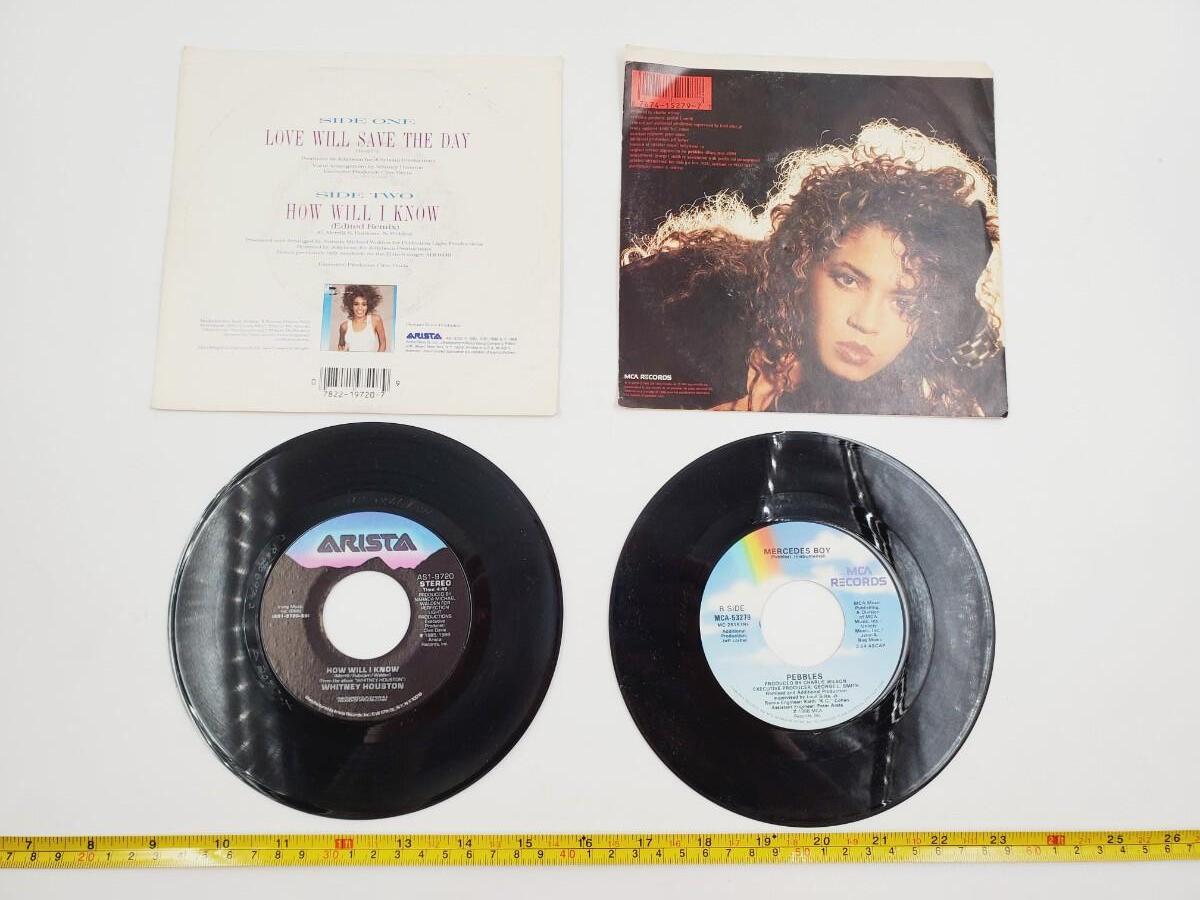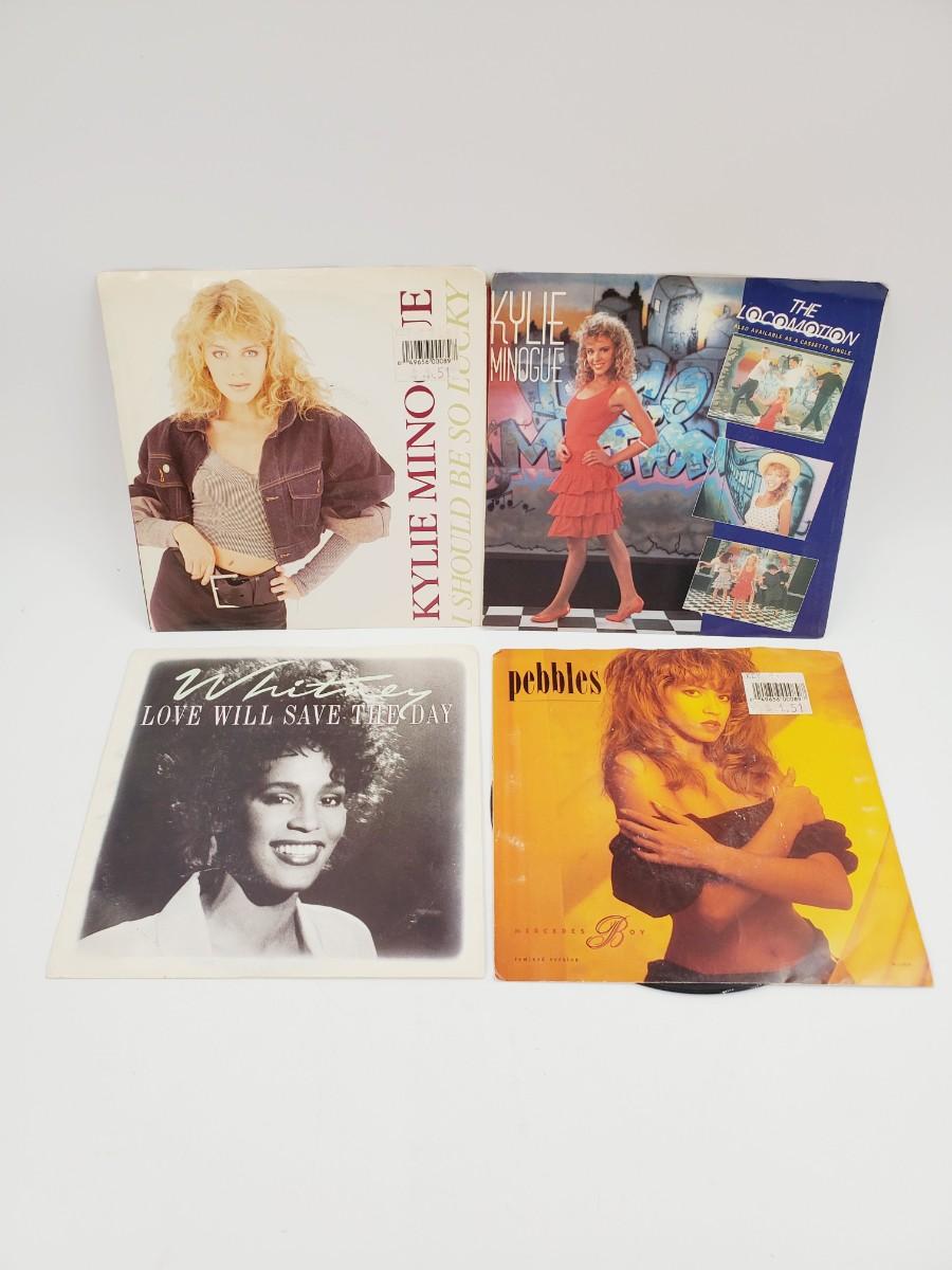 WHITNEY HOUSTON, PEBBLES, AND KYLIE MINOGUE 45 RPM VINYL BUNDLE