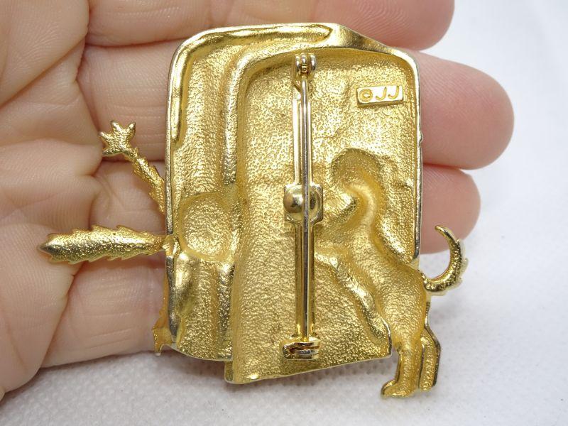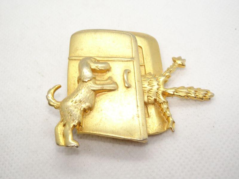 Who Let the Dogs Out? Gold Tone Cat & Dog Refrigerator Brooch