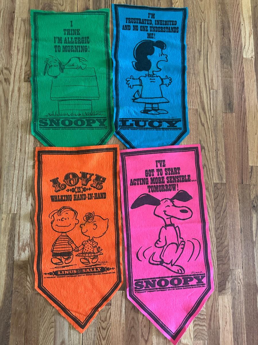 WHOA! 1967-68 Snoopy and Peanuts Felt Banners HIGHLY COLLECTIBLE