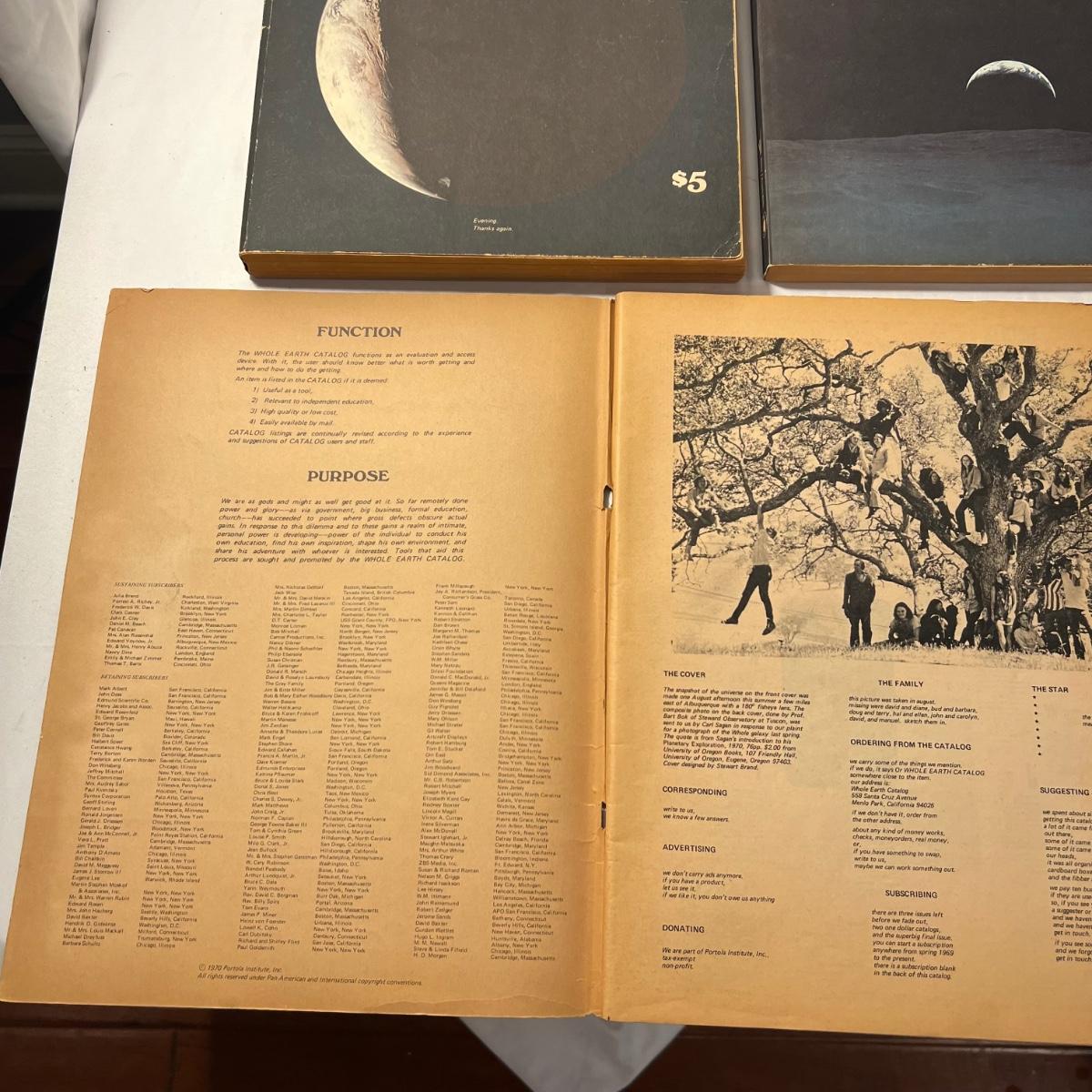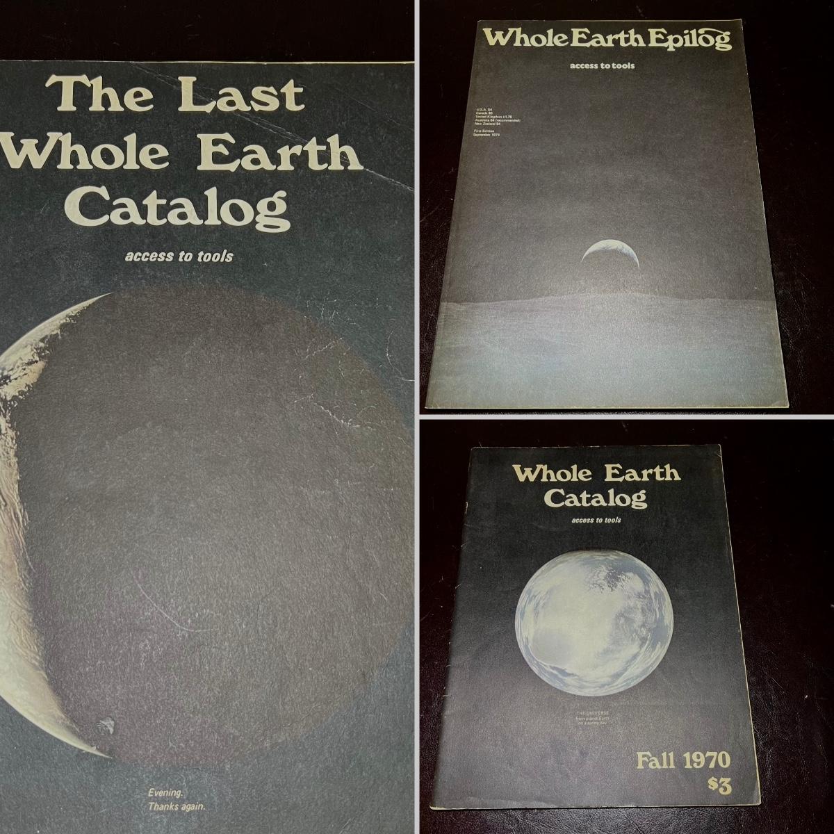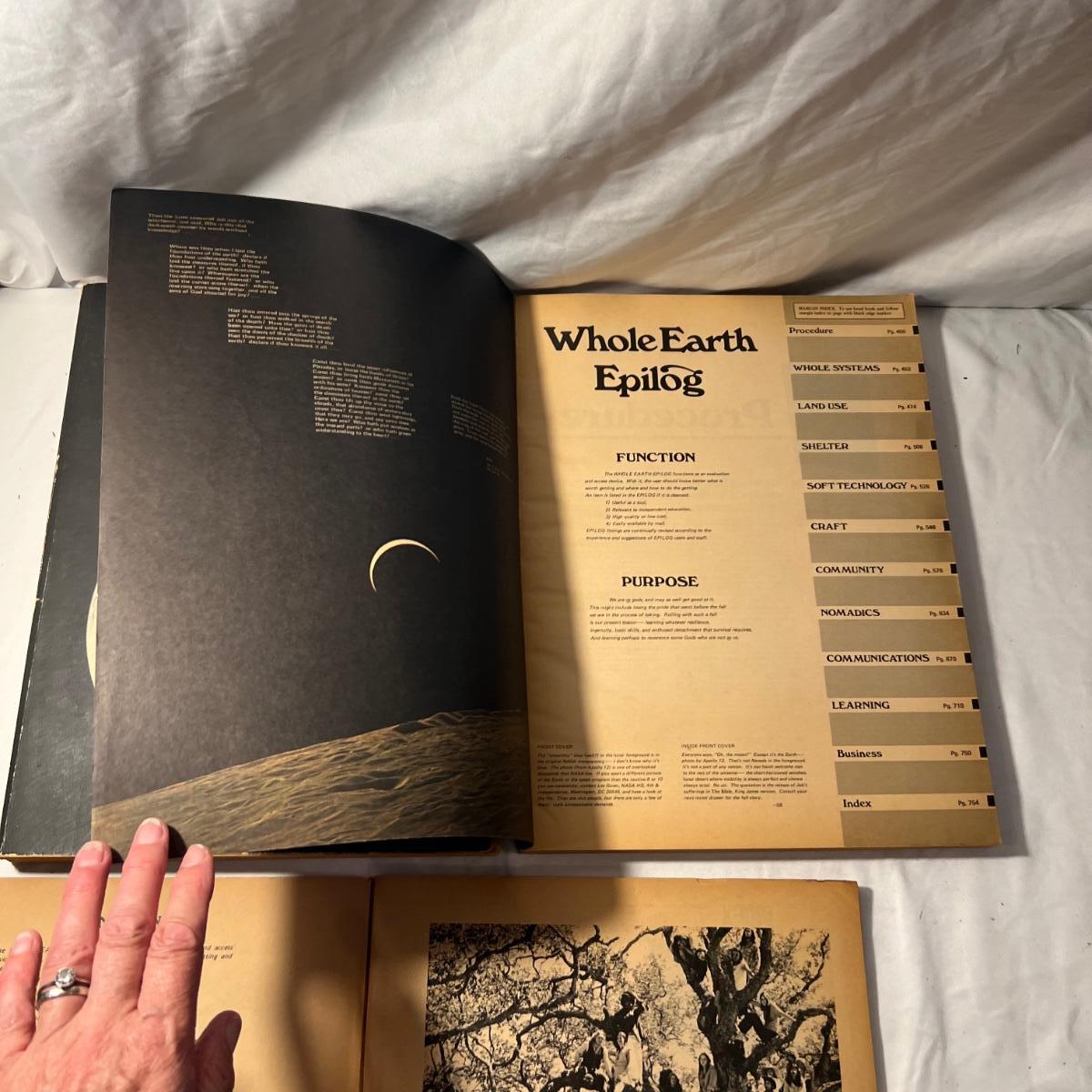 Three Whole Earth Catalogues that measure 11” x 14.5”. See images for more information and note the binding is coming loose on one catalogue.