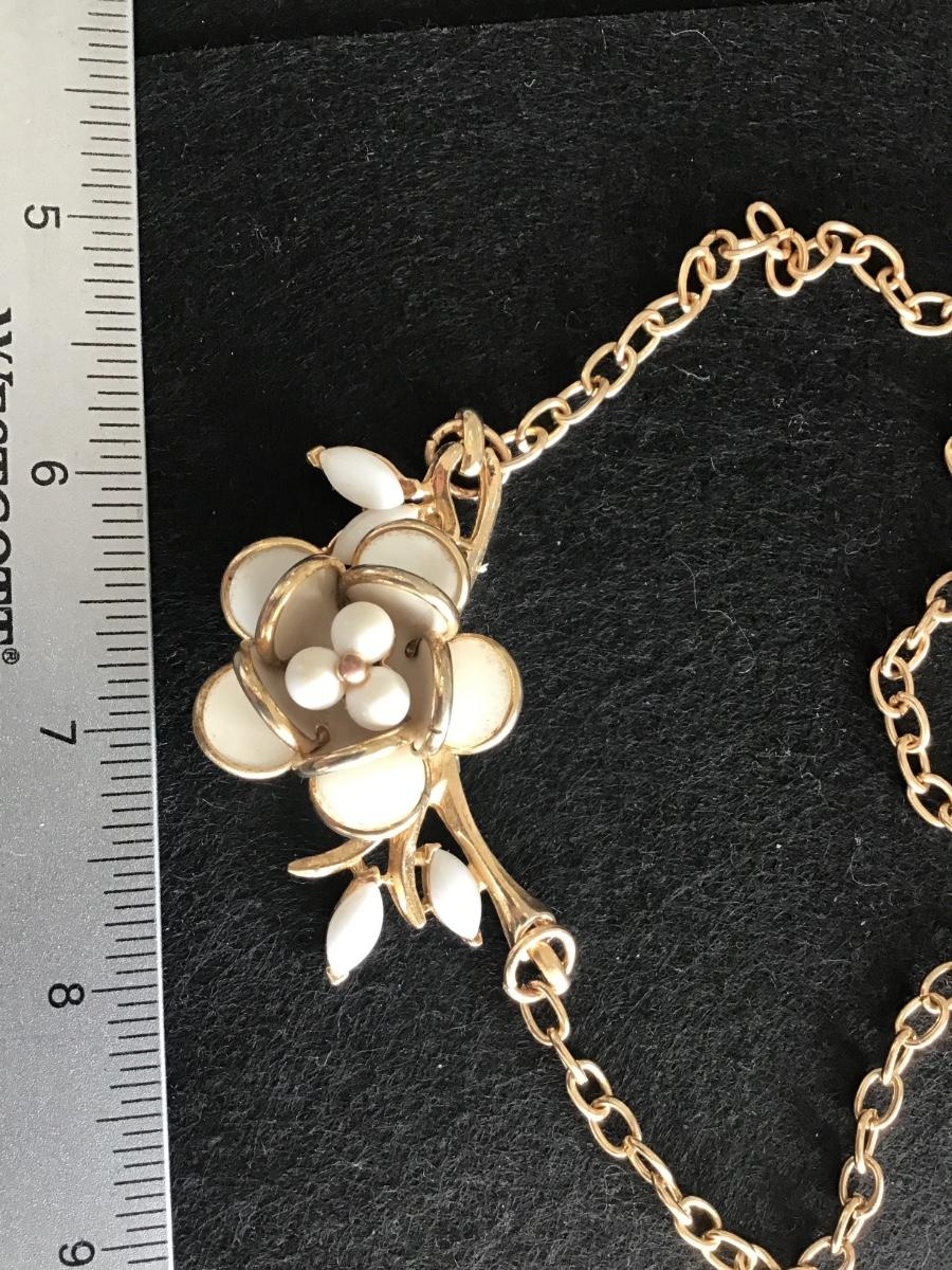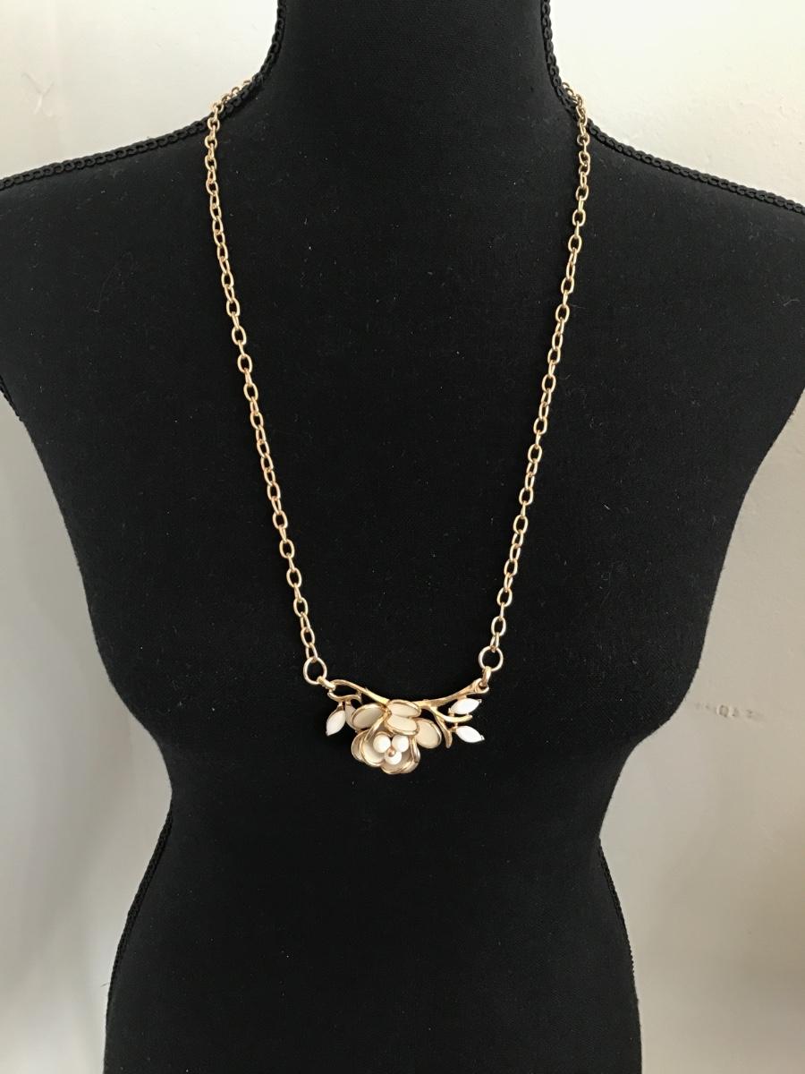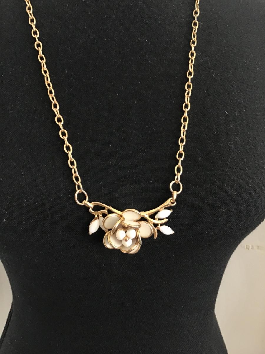 Whote Flower Vintage Pendant on Gold Tone Chain