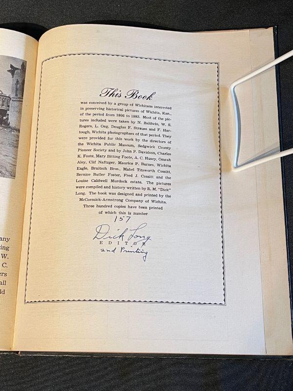 This limited edition, signed copy of the book details the early struggles and triumphs of the founding of Wichita, KS.,and includes many rare photos of of the city as it was established and grew.