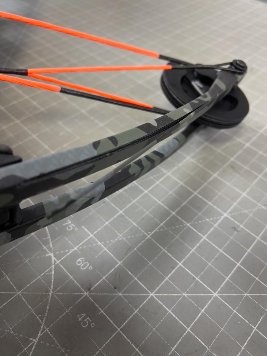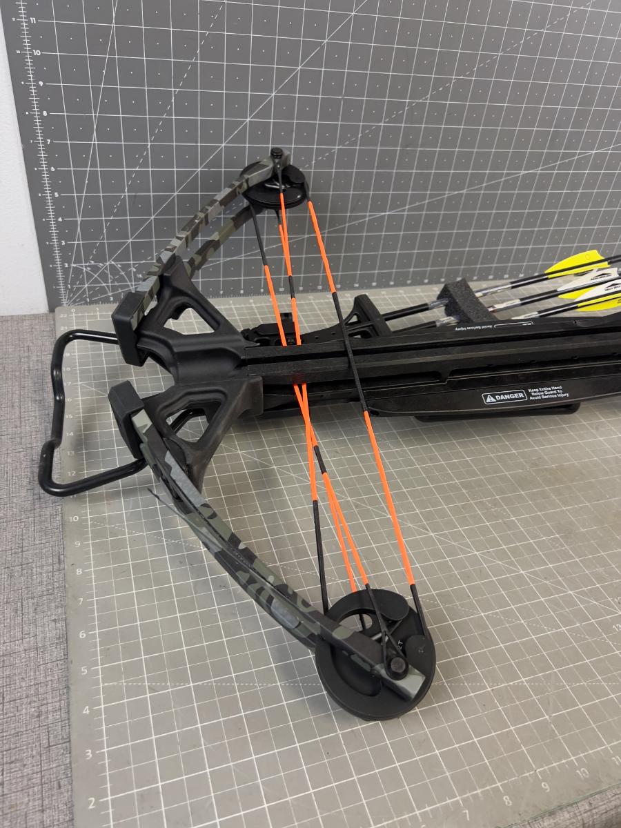 Has a Damaged Limb that will need to be replaced or repaired before firing. DO NOT ATTEMPT TO USED BEFORE REPAIR. YOU COULD PUT YOUR EYE OUT!