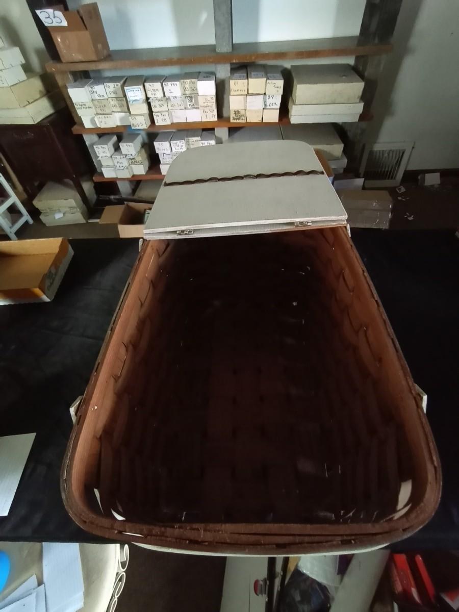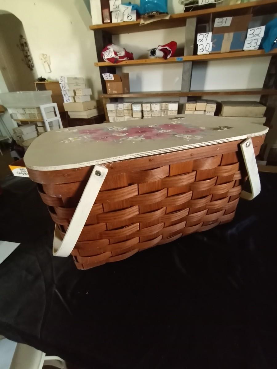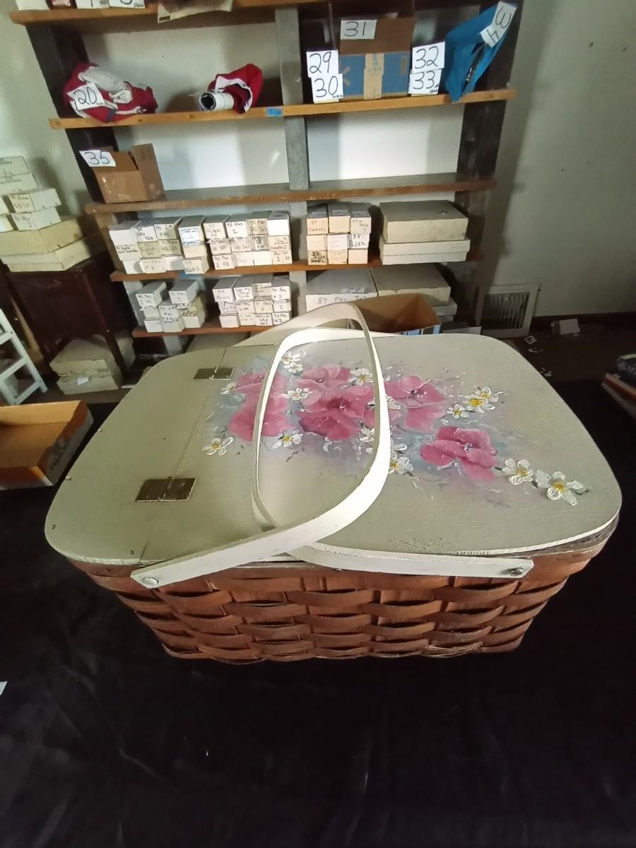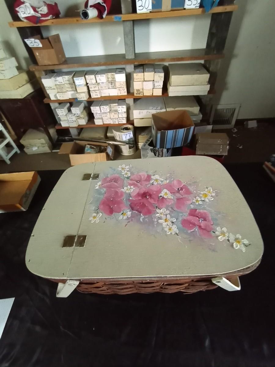 WICKER AND HAND PAINTED PICNIC BASKET WITH HANDLES