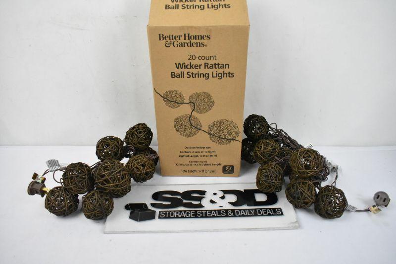 Wicker Ball String Lights by BH&G 20 Count (2x10) - New
