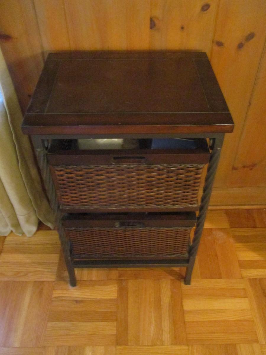 Metal Frame Accent Table with Wooden Top and Wicker Storage Baskets- D