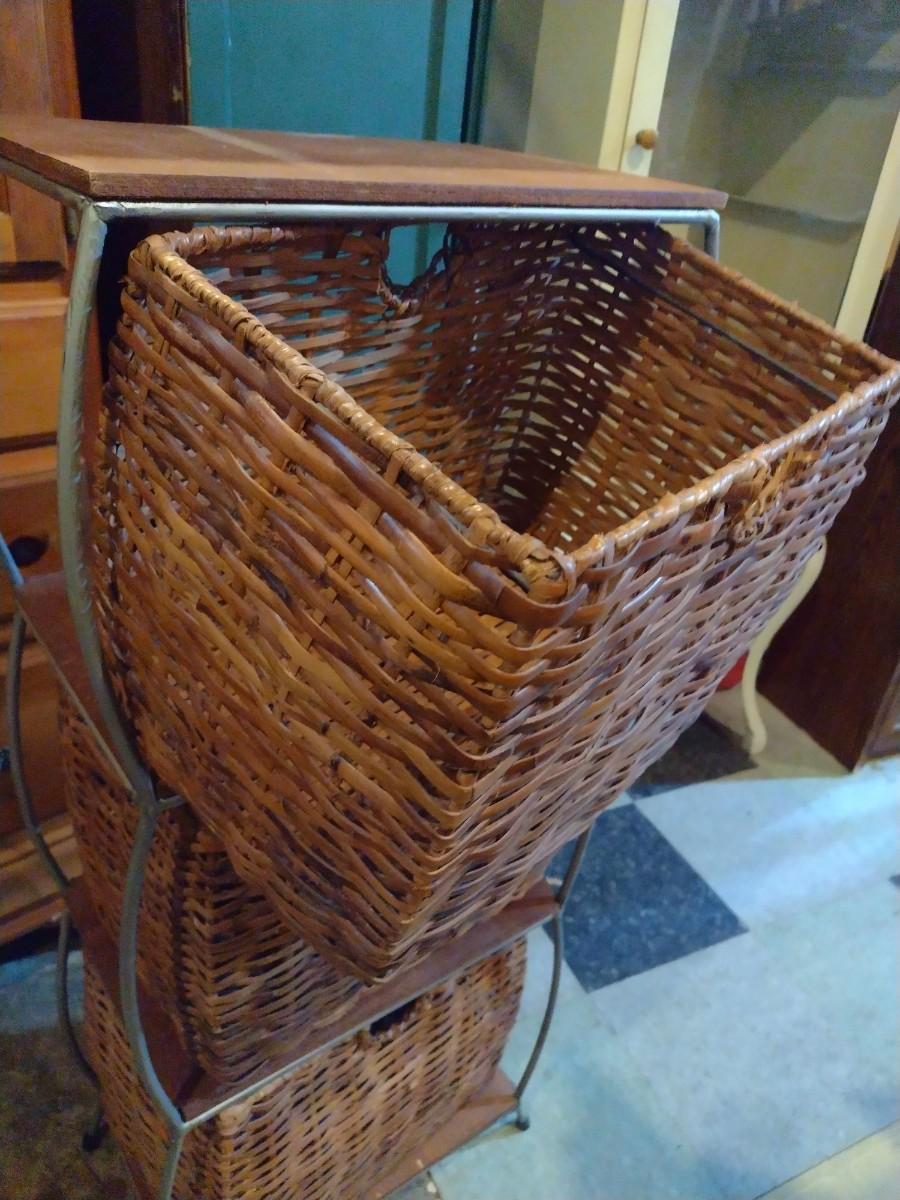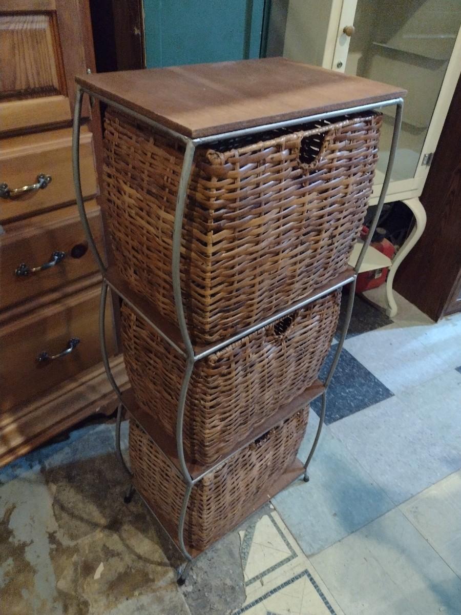 Wicker Basket Three Compartment Filing or Storage Tower