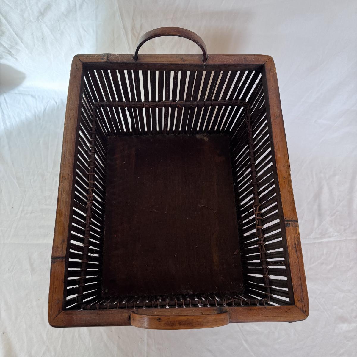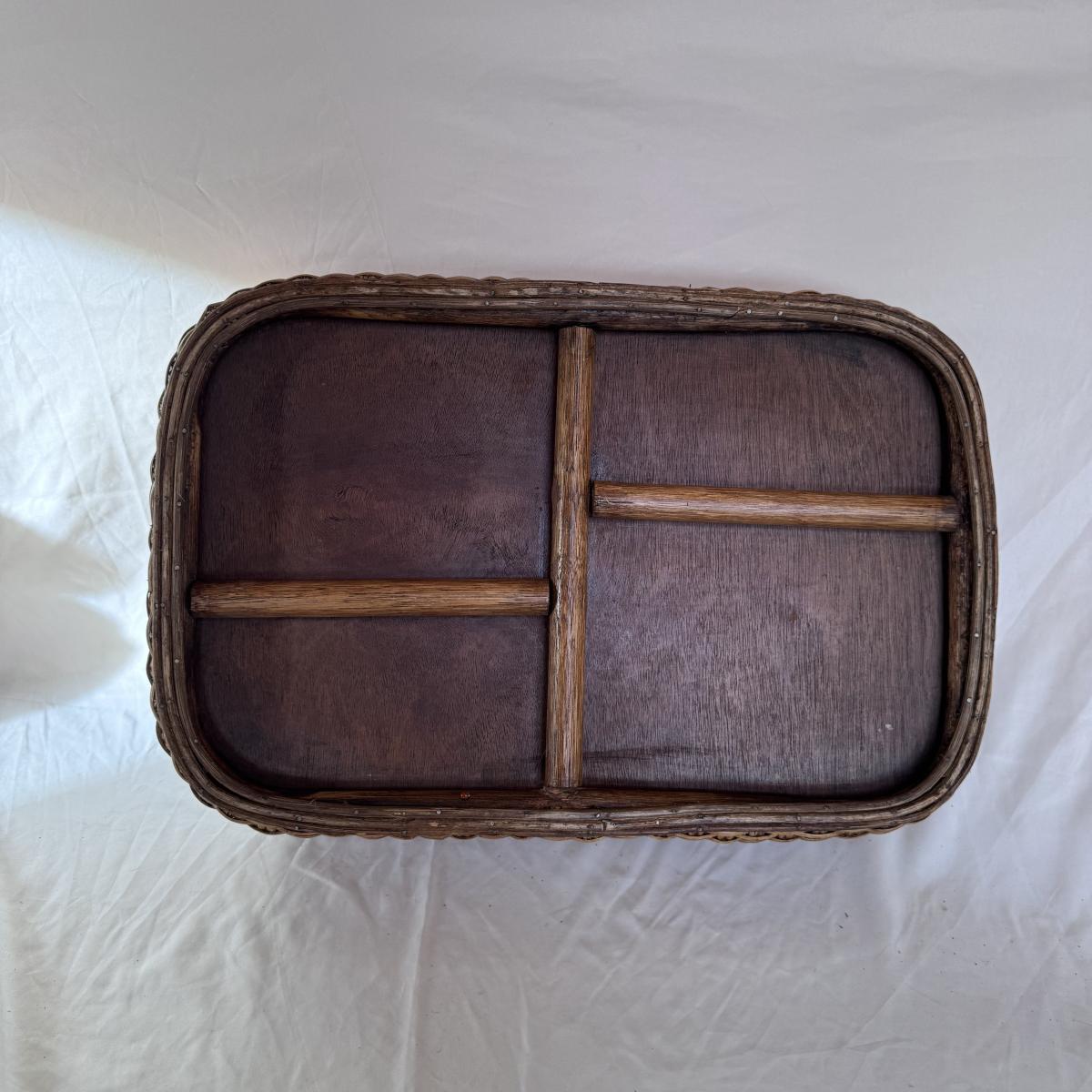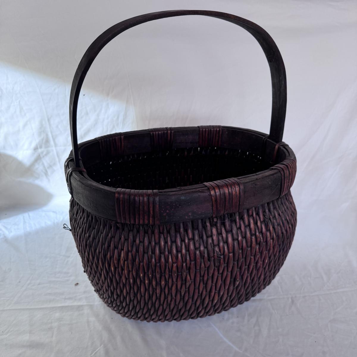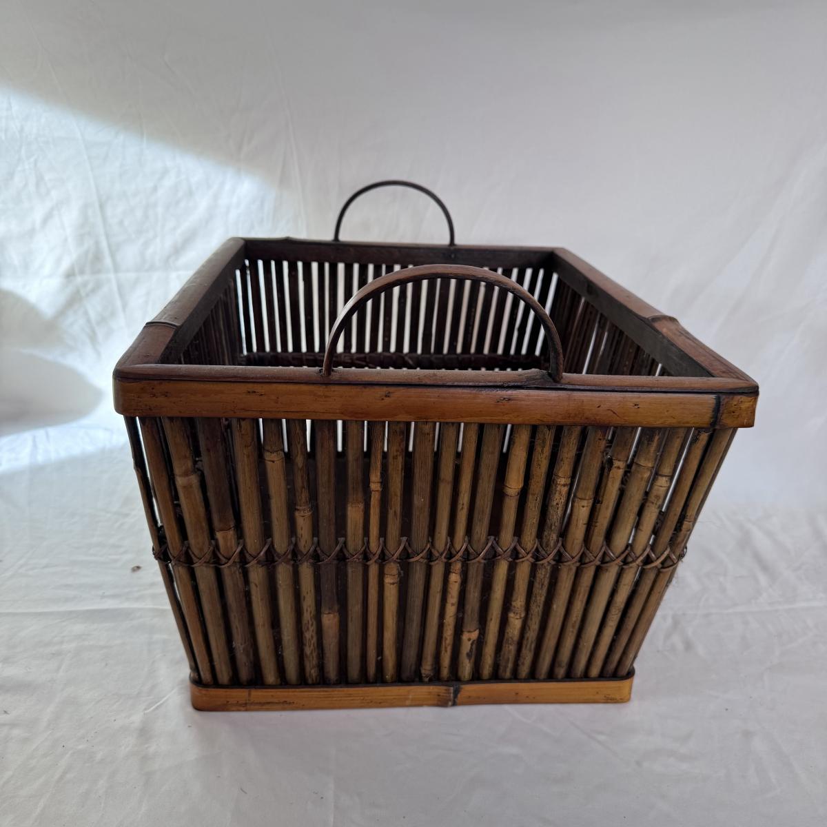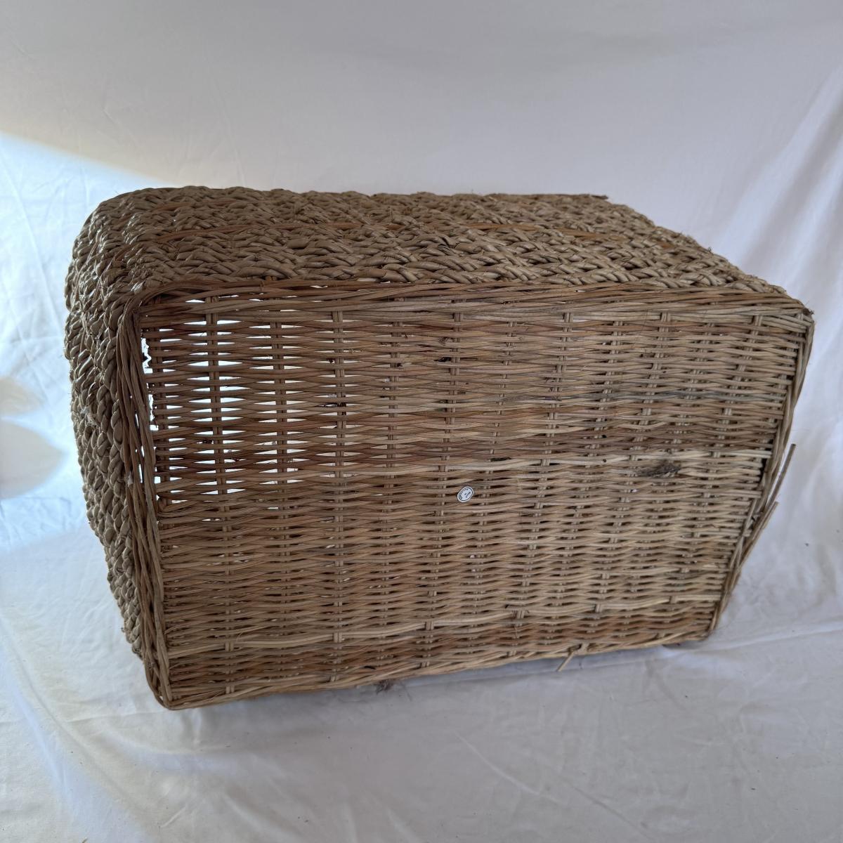 This lot of wicker baskets includes one tray and four baskets of different sizes. Four out of the five baskets have handles. All are made of wicker. The last basket individually pictured measures 21” x 13” x 12”H. Local pickup only.