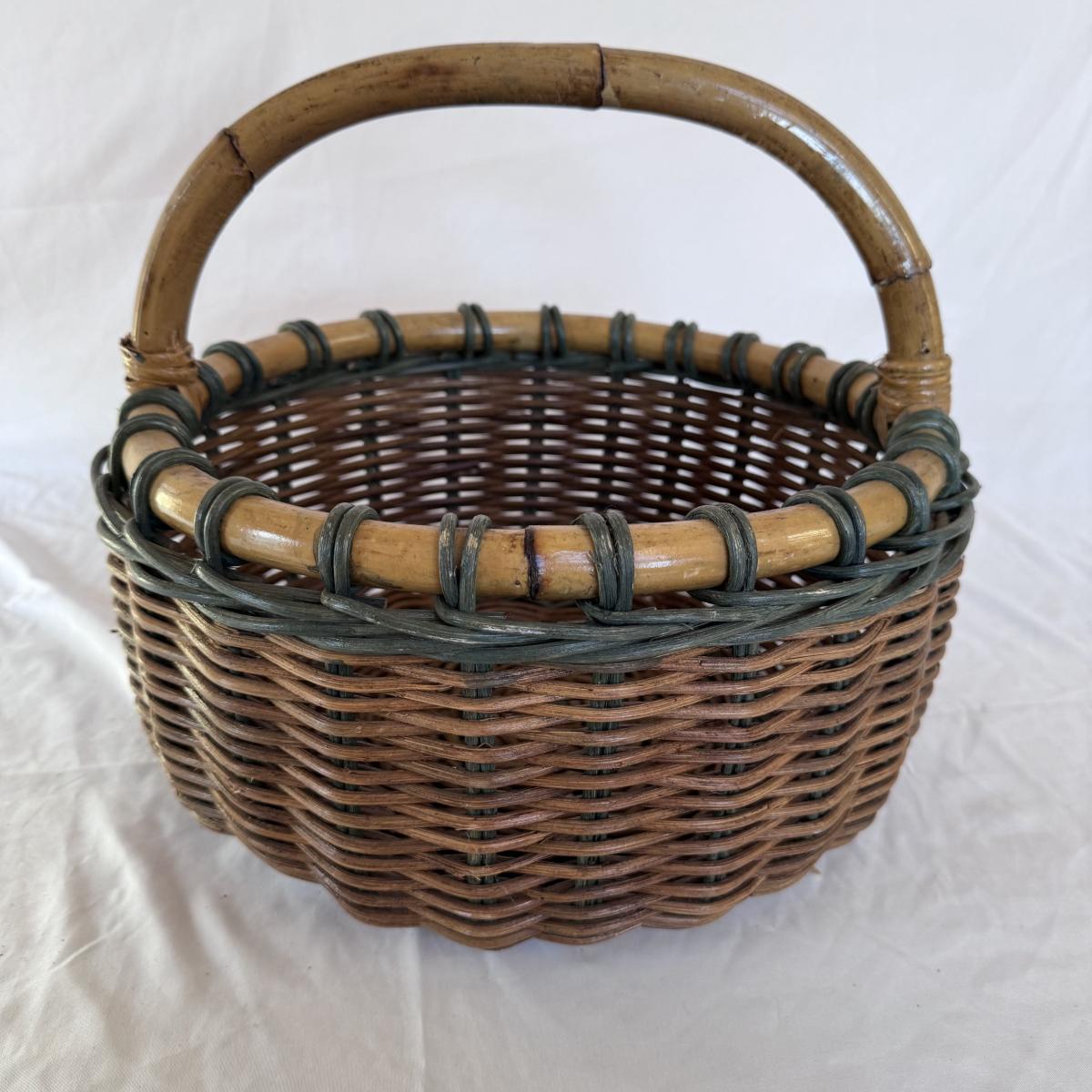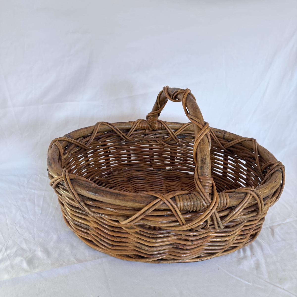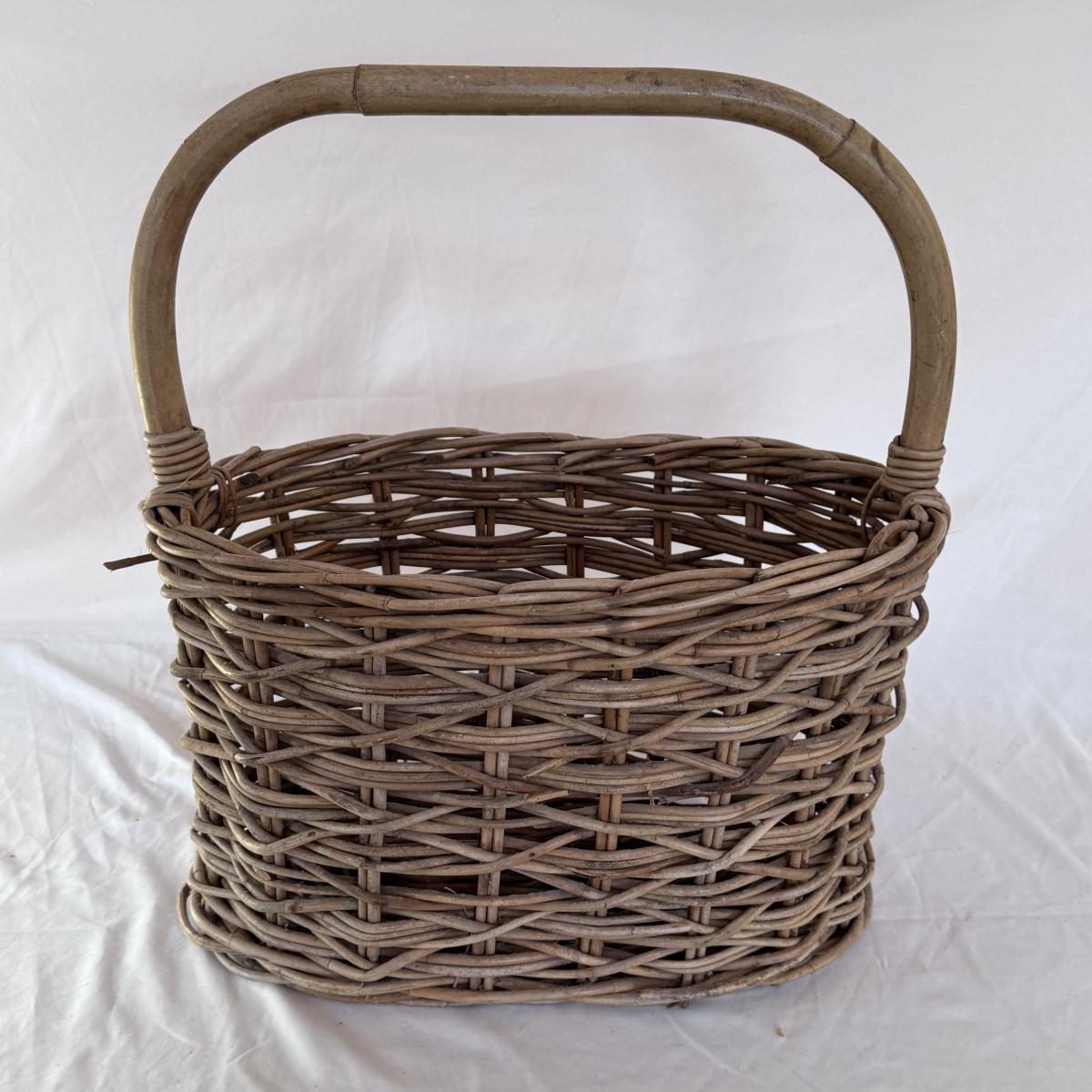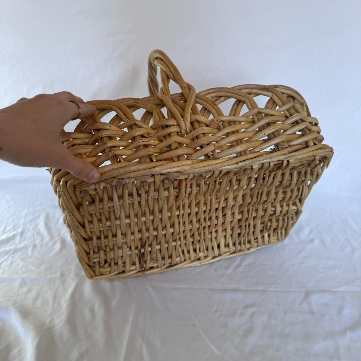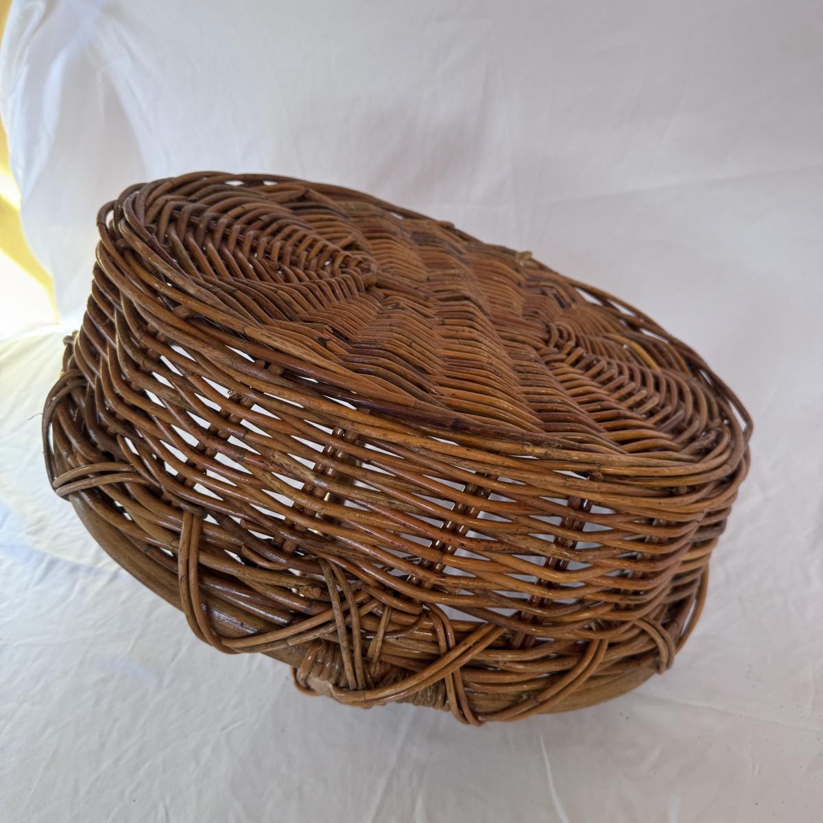 This lot includes eight wicker baskets in different sizes. All baskets have a handle and one even has a small cloth that is removable. The largest basket measures 16” x 29” x 15”H. Local pickup only.