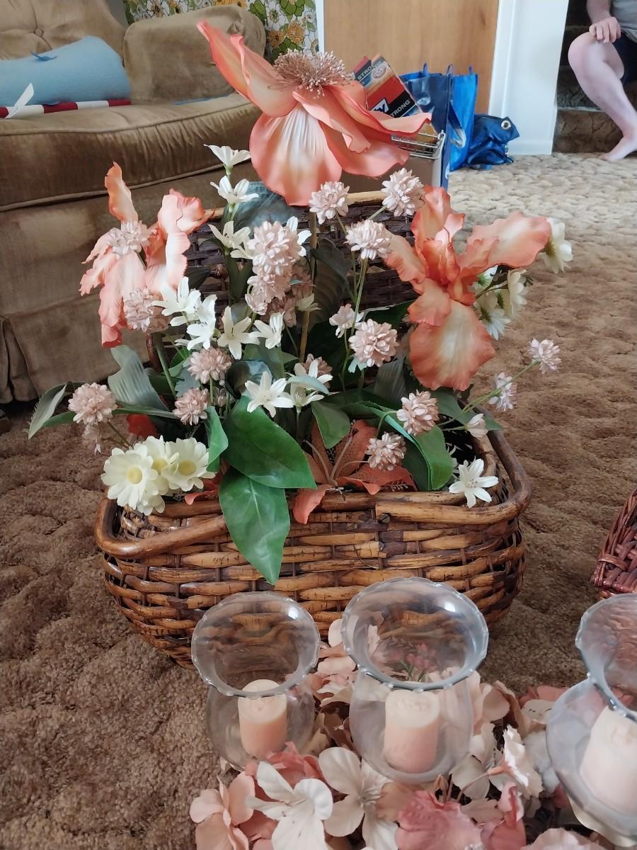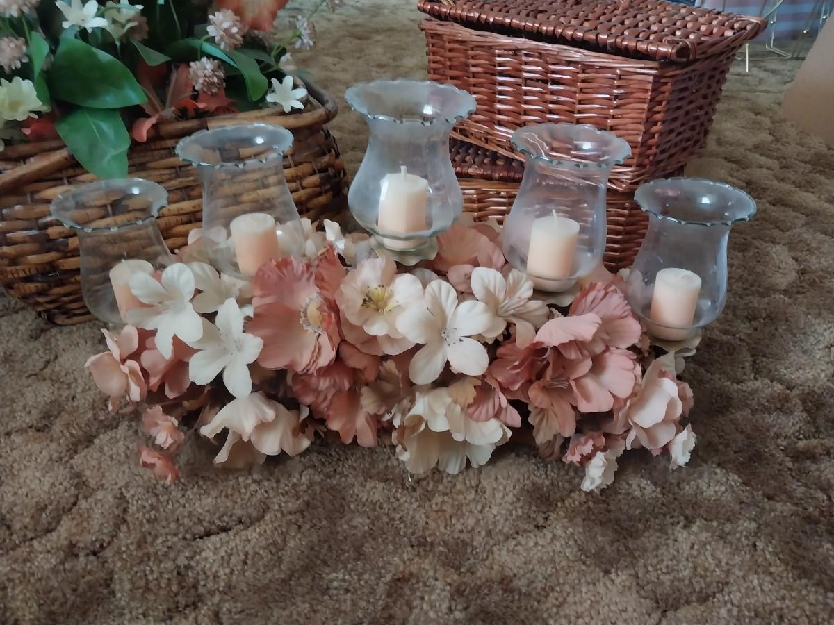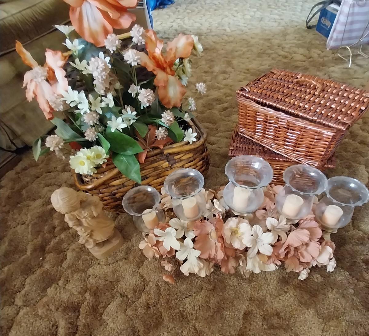 WICKER BASKETS-VOTIVE CANDLE HOLDER-FAUX FLOWERS-GIRL FIGURINE