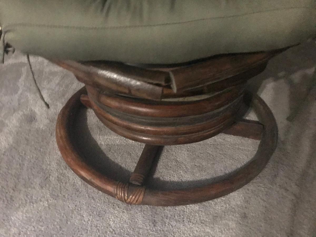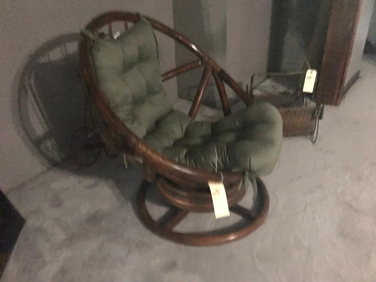 WITH CUSHIONS; 33"W X 33'H, CUSHIONS FADED, SOME WEAR ON WICKER