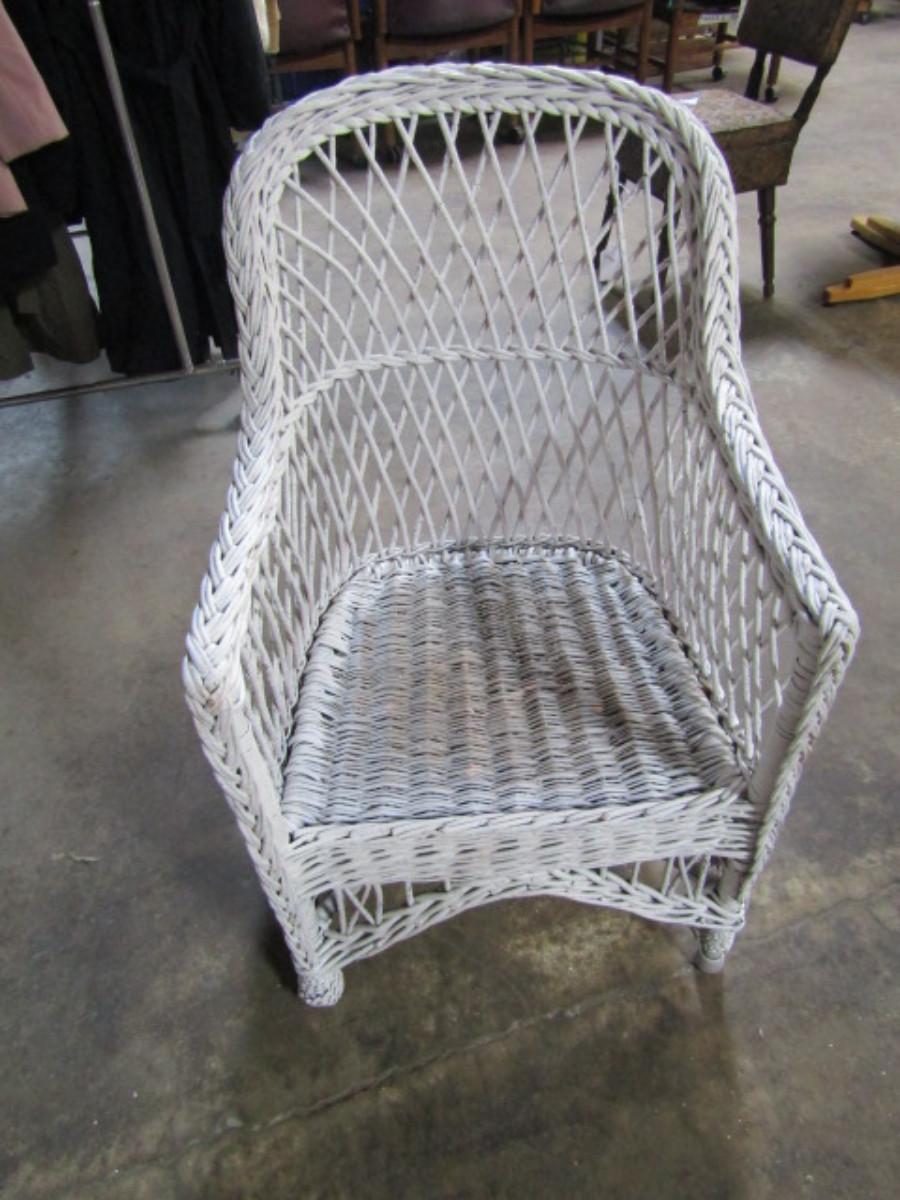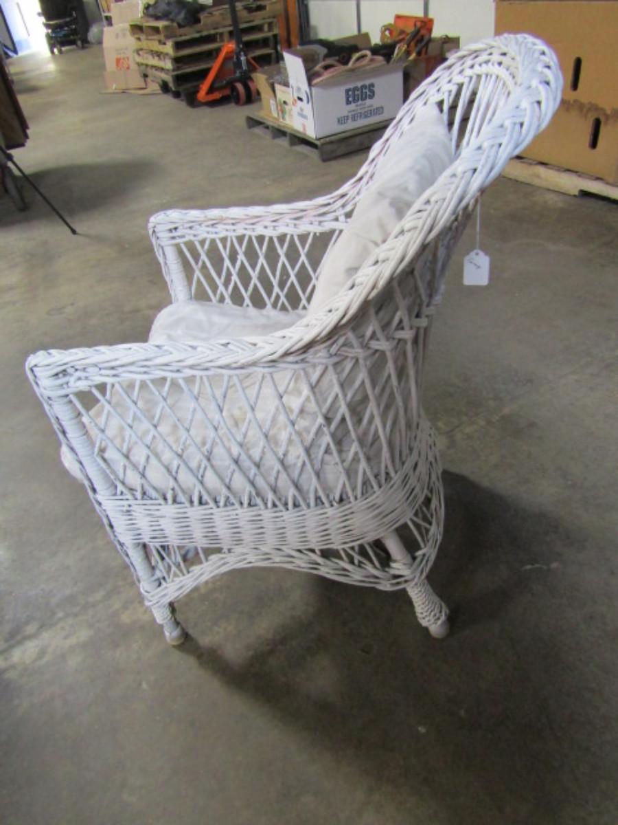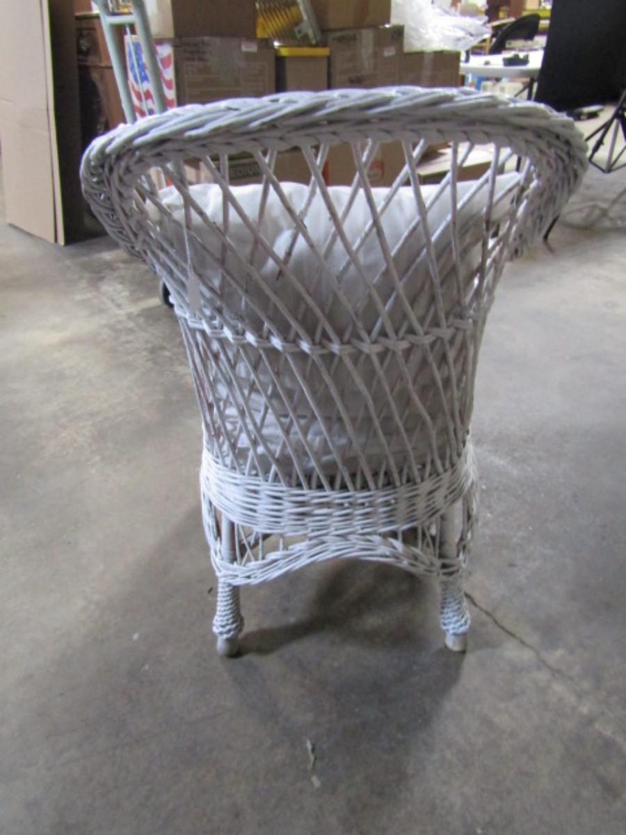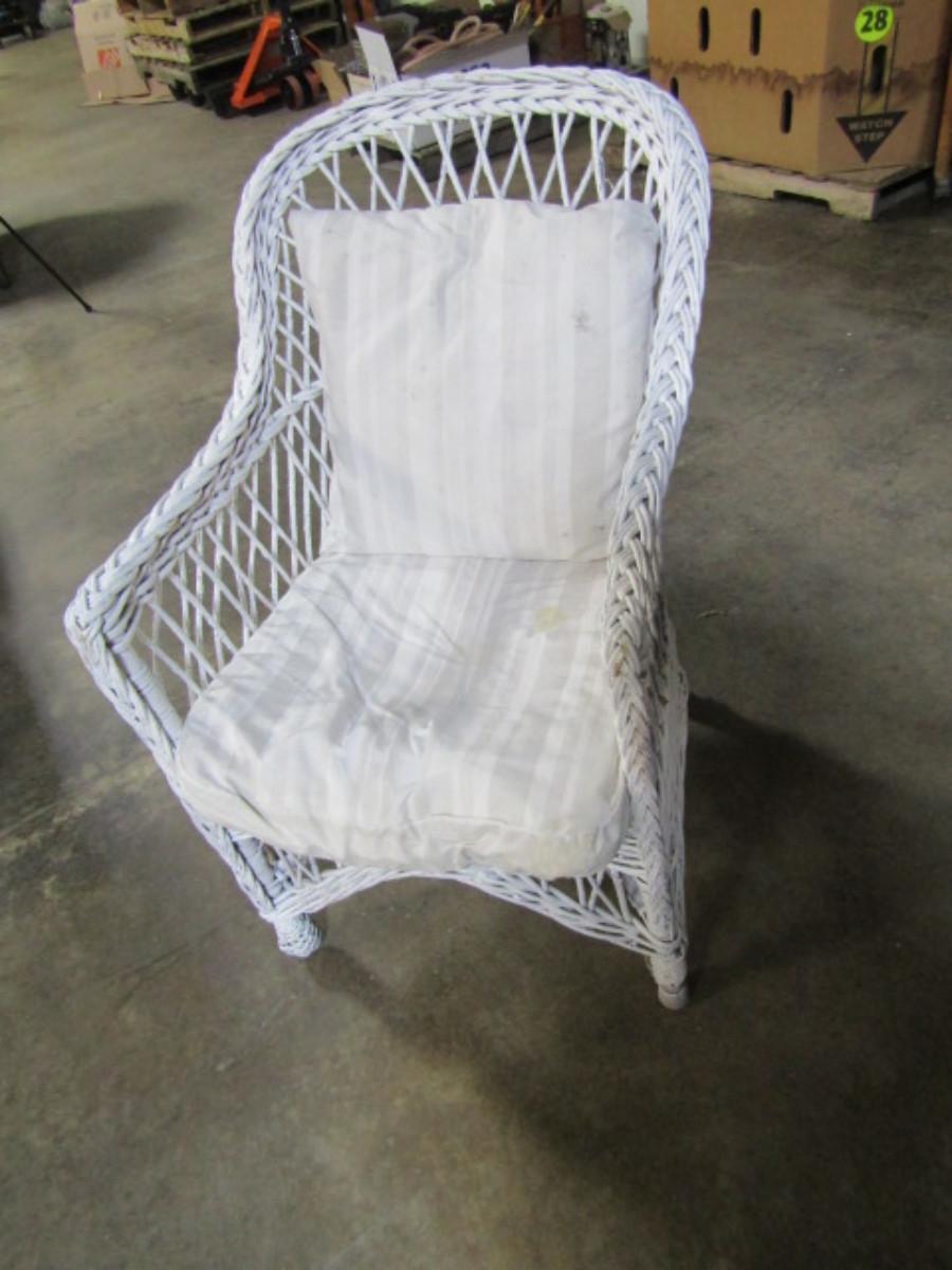 Wicker Chair- Approx 20" Wide. Two cushions are included, but they were not made for the chair and are not an exact fit- please see all pictures.