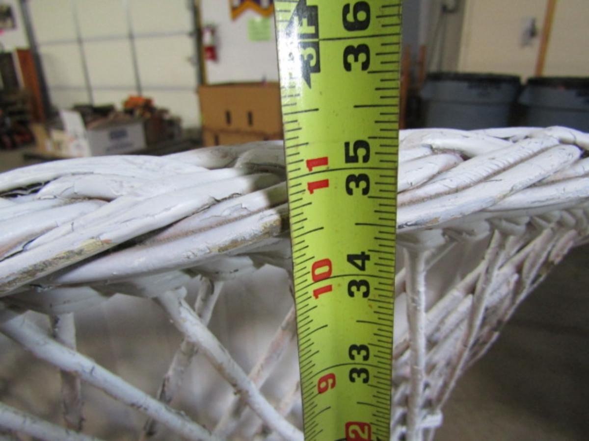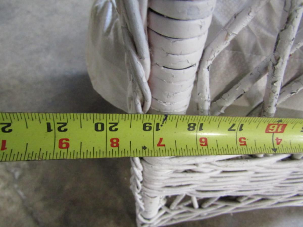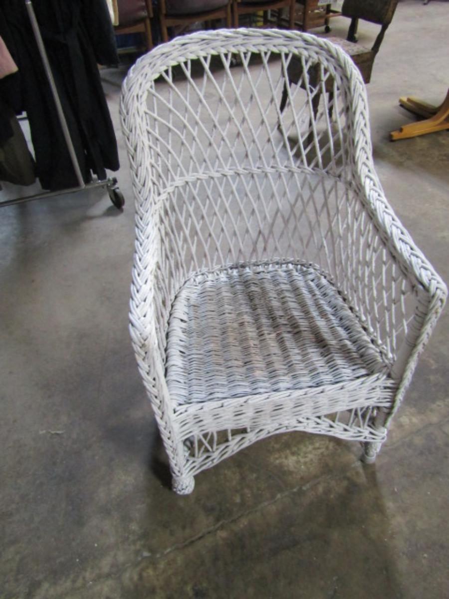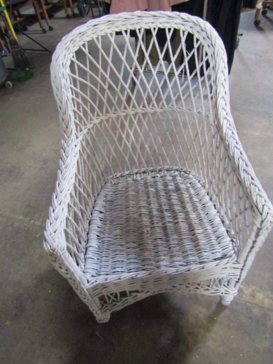 Wicker Chair- Approx 20" Wide. Two cushions are included, but they were not made for the chair and are not an exact fit- please see all pictures.