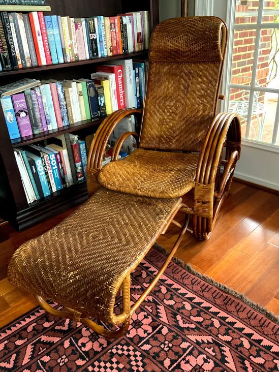 Wicker chaise with pull out and magazine holder