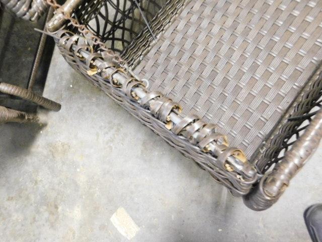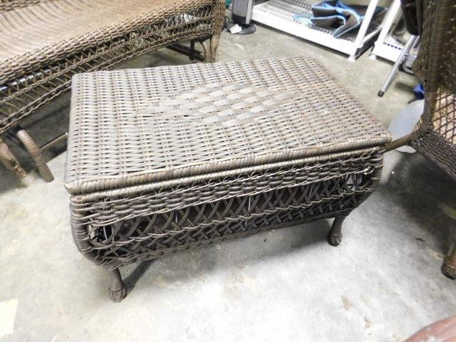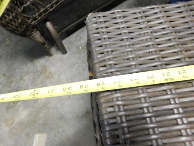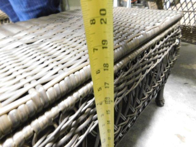 Wicker Coffee Table Flip Top Chest 28" has small hole on surface and some unraveling on interior as shown